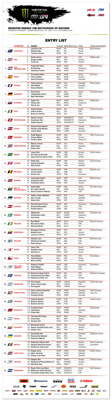 2025 Monster Energy FIM Motocross of Nations Provisional Entry List