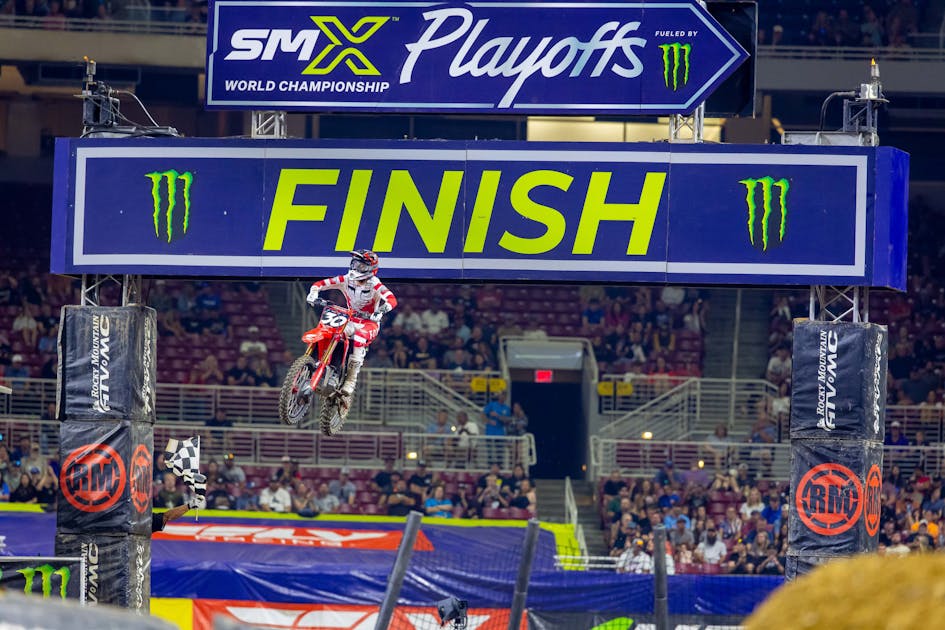 Kayden Minear won Friday's first main event (yes, noted as a race from SMX Playoff 1 due to the system although they actually raced in St. Louis) and then Ryder Malinoski won Saturday's main event. Minear's 1-2 gives him the SMX Next World All-Stars Championship.