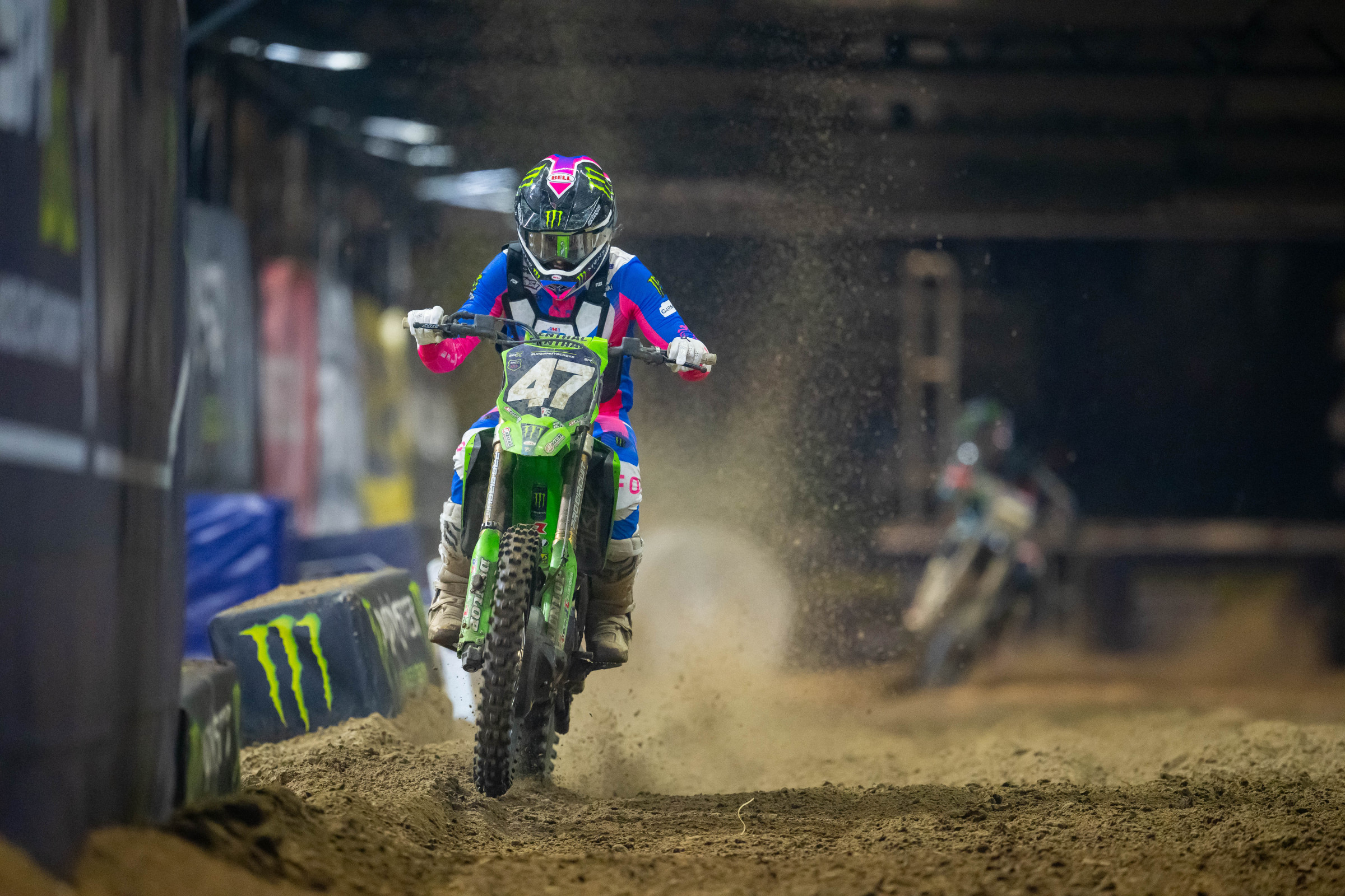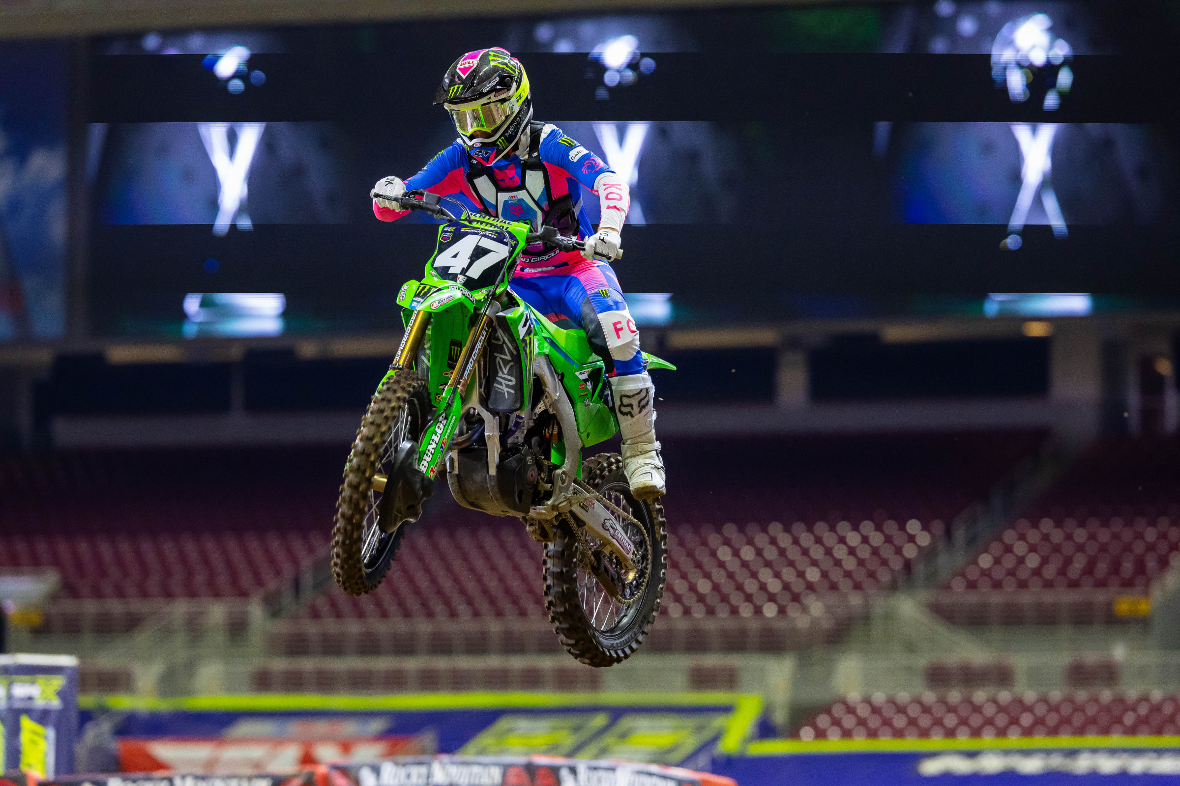 Yeah. On paper, it looks horrible so far, SMX. But Charlotte, I worked my way up from twelfth to third. Unfortunately got fourth [with a red cross penalty]. Then this weekend, after eating shit pretty hard on the start in practice, got up, qualified second. Honestly, I do feel like I’m riding really good. I feel like I’m one start away from people being like, there’s the 47, where he has been in the past or whatever. I really feel that could happen this weekend.