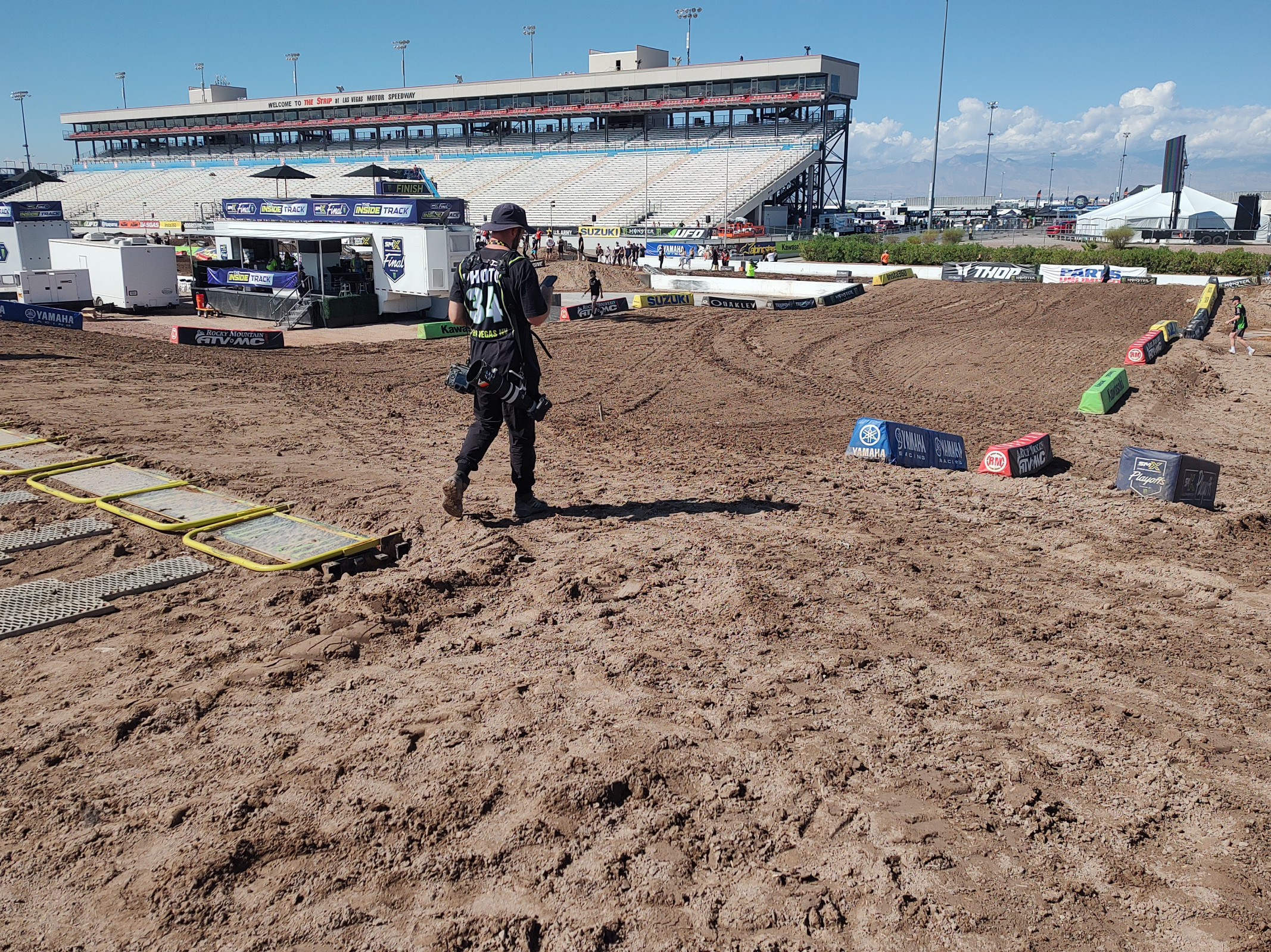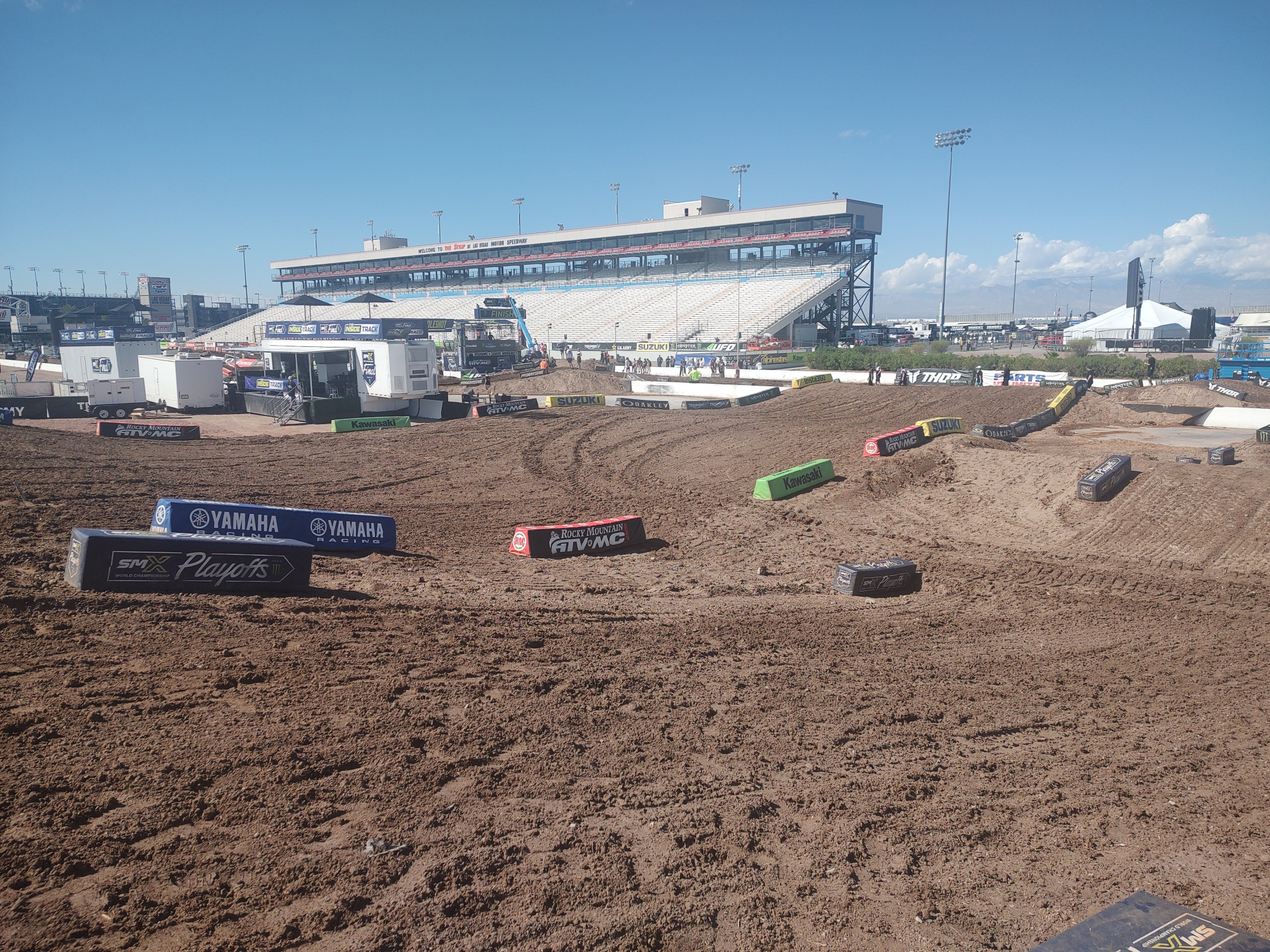 As far as the dirt goes, there’s a lot of mulch mixed in in most areas. In places it almost felt like walking on landscaping bark. Tomorrow is going to be hot, and the direct sun is no joke here in Las Vegas, so hopefully this helps retain moisture. And speaking of moisture, a small amount of rain came down on Thursday evening, and a thunderstorm rolled through on Friday afternoon. A fair amount of rain came down, but probably not enough to have much of an impact on today’s racing. Buckle up folks, we’re in for a great day of motorsports!