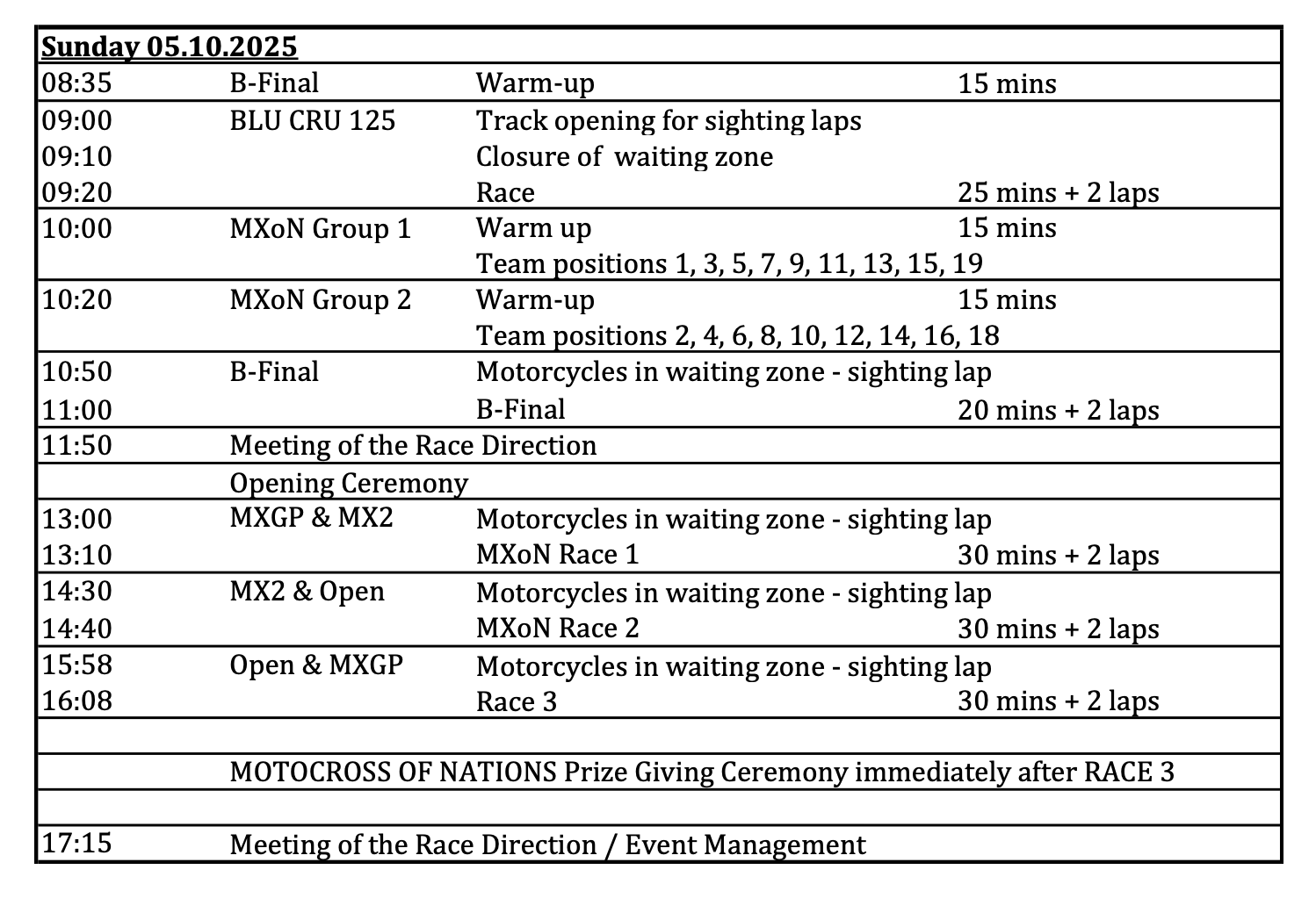 - MXoN Race 1 (MXGP & MX2)LiveOctober 5 - 1:00 PM