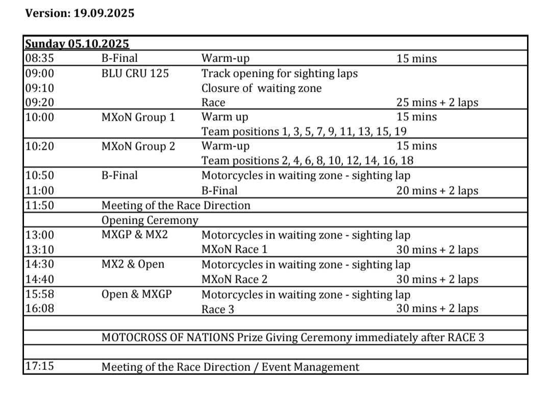 - MXoN Race 1 (MXGP & MX2)LiveOctober 5 - 1:00 PM