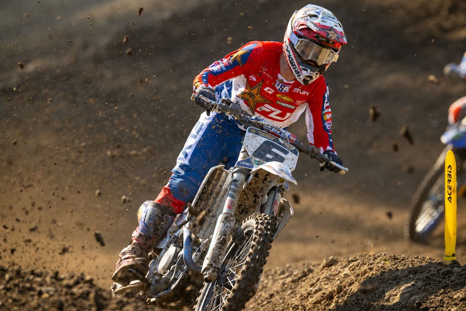 Turns out Hampshire had already suffered a big crash early in the week and wasn't even sure he could line up for the weekend. He admitted he was fighting through some pain in his ribs and his side and then impacted his riding style. He also--in a statement echoed by teammate Cooper--said the Saturday qualifying race took something out of him. Hampshire was on the ropes all weekend, and then came more crashes in the final moto. The final one was bad, as he smashed into a TV camera stand and ripped a hole in his bike's gas tank. With that, his race was done.