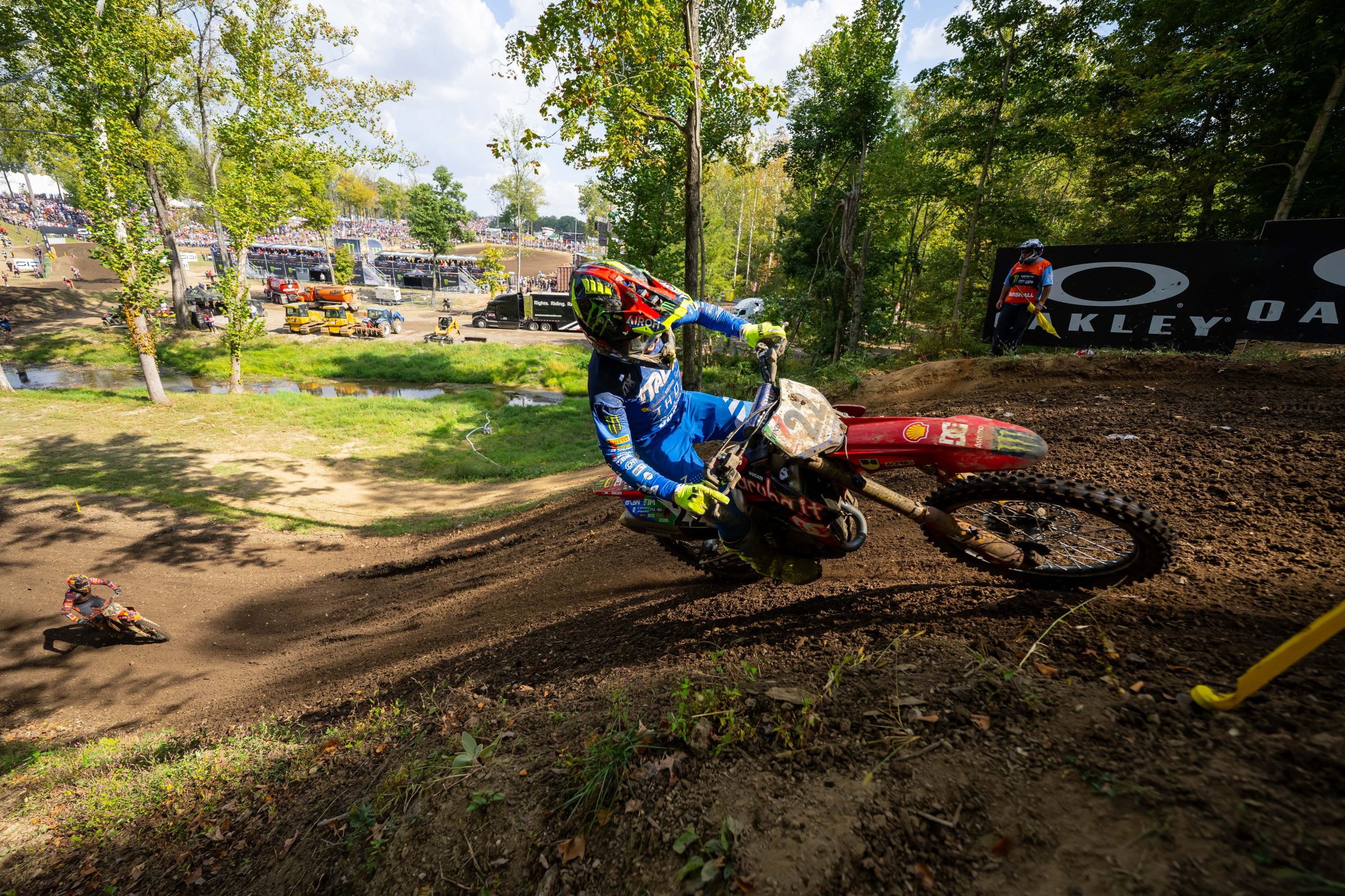 Roczen: I have no idea what I ended up, I just tried to go as long as I can, but I’m not prepped good enough for that. The track was fricking sketchy in some areas, like really sketchy. That’s not an excuse, that’s just for me, I know that but I wanted to show up, it's going to help me anyways. It’s a good little dig. But yeah, just a disastrous day for Germany. I mean Simon [Langenfelder] got knocked out off the bat, then that first crash is on me, it just happened so fast. I came around the first turn, I had a really good start, I was second and third, Jett was right there, and he went to the inside rut. I knew there wasn’t a full-blown berm like how it was yesterday so I kind of just made myself light and stayed low, but they did water it and it was way slicker than I thought it was and just crashed.