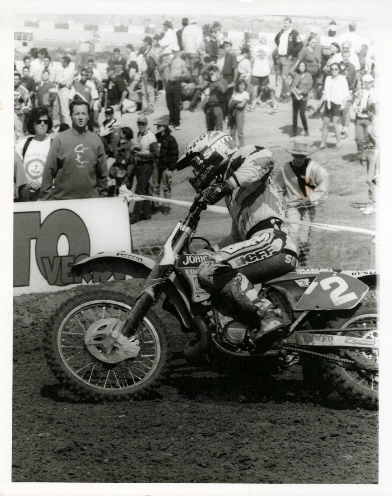 One of my favorite trips was to Jerez, Spain, for the '96 race. The track was on the infield of a road course, but it had some really big hills. The promoters built a very American-style track, with steep, supercross-style jumps, including a downhill triple that played right into Team USA's hands. To no one's surprise, Jeremy McGrath (#5) dominated on his Honda CR250—his last outdoor race on that amazing motorcycle, as he would shockingly switch to Suzuki prior to the '97 season opener. His Team USA stablemates were Steve Lamson (#6 on the Honda CR125) and Jeff Emig (#4 on the Kawasaki KX500), and both would also win their classes easily. Having not-so-great days in Spain were Belgium's Stefan Everts (#2), France's Sébastien Tortelli (#9), and New Zealand's Shayne King (#19).