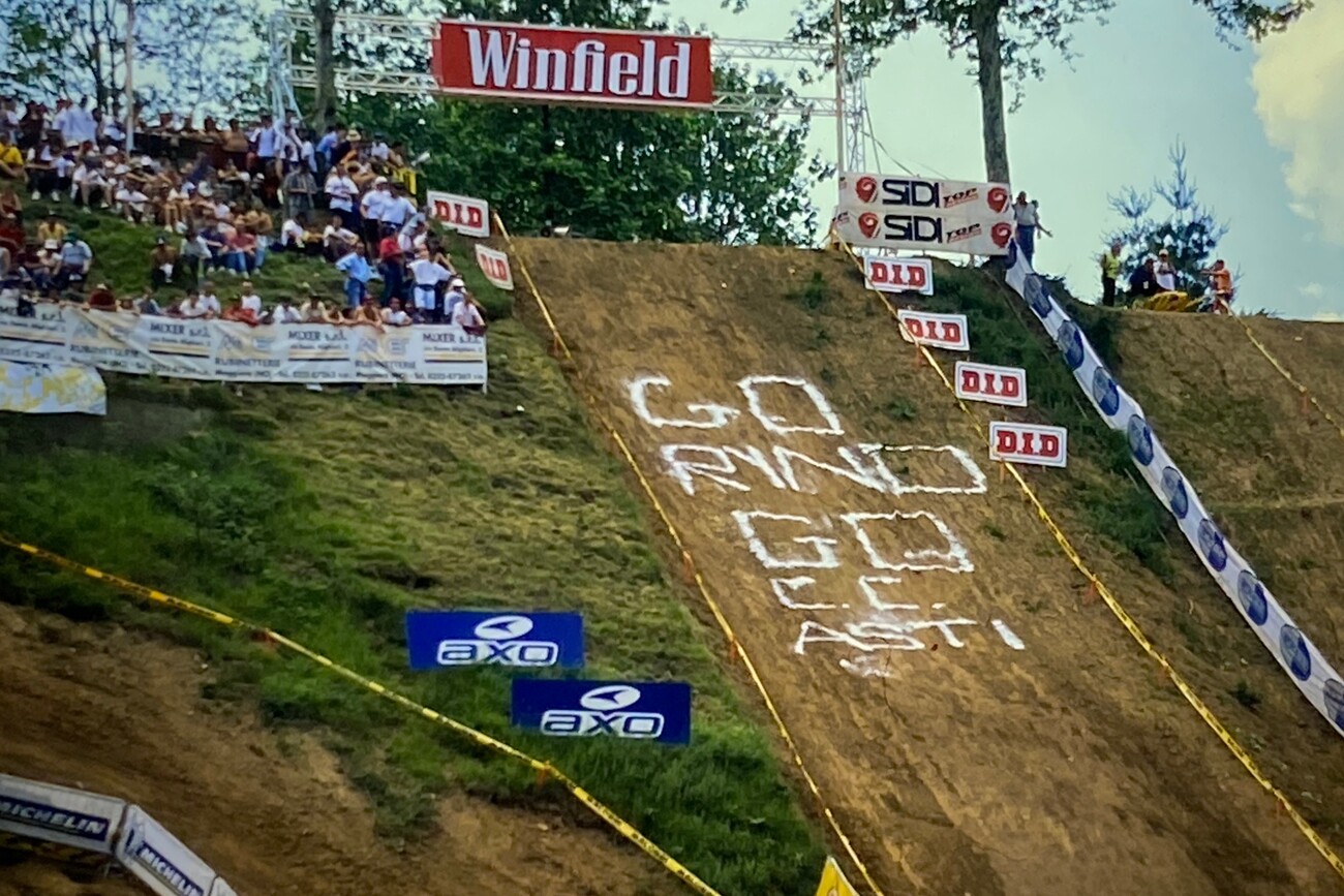 The Fan(s) of the Year at the 2025 MXoN are the however-many Estonian fans that snuck out on the track on Friday night and raised their flag over one of the infield tunnel jumps, along with the black flag of their moto club back home. I saw it on Saturday morning and thought, Hmmm... That wasn't there yesterday. MX Sports' Tim Cotter saw it too, but we didn't talk about it together, as we both somehow thought, Hey, good for them, let's leave it up and see if anyone else notices. Many probably did, but no one apparently realized it didn't belong there. The Estonia tri-colors and the black flag stayed up all weekend. After the race, when I went over to their pits to visit Harri and Lysette Kullas, I mentioned it, and they busted out laughing. Apparently, whoever did this does it every year at the MXoN! It reminded me of a 250 GP I went to in Maggiora, Italy, in 1999 when Ryan Hughes was living and racing there. He practiced a lot at a local track called Asti, which had its own moto club. The night before the race, they snuck out onto the track and painted a big "Go Ryno Go!" on the big ski jump in the middle of the track, plus "CC Asti," which meant "Cross Club." They painted it above the landing zone, and it stayed there for much of the day!
