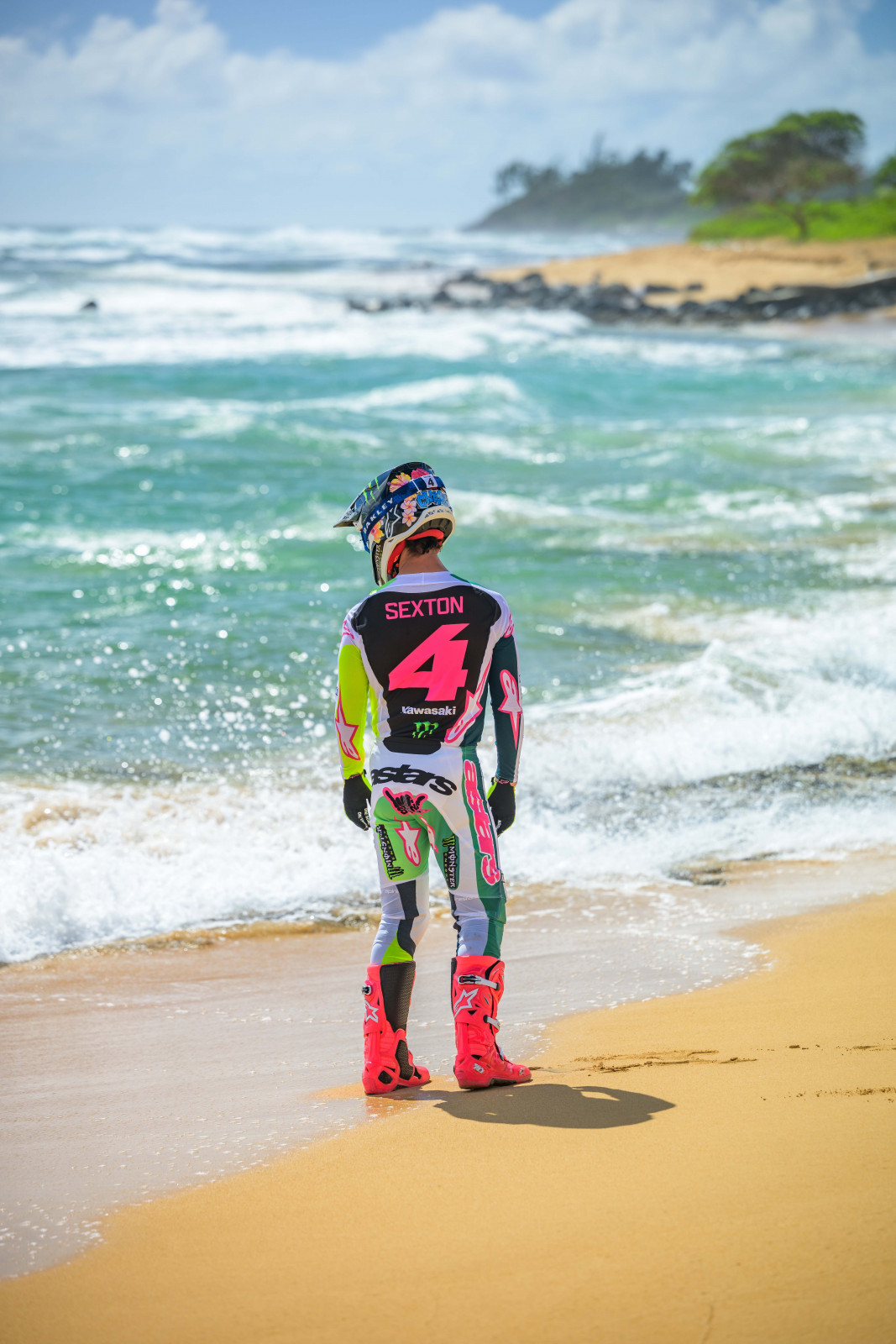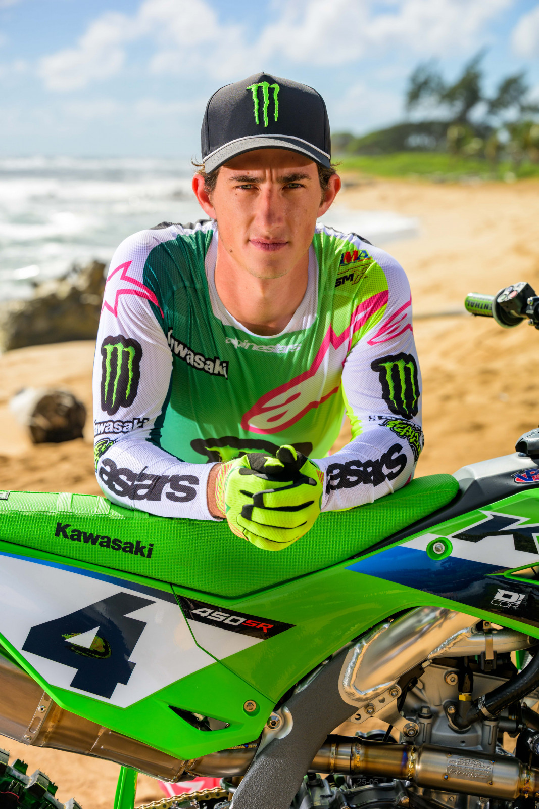 Chase Sexton’s move to Monster Energy Kawasaki was finally announced this morning via a team press release. The Illinois native had a photoshoot in Hawaii with his new #4 Kawasaki KX450SR. Kawasaki sent over some photos from the unique shoot, which was done by Octopi Media.