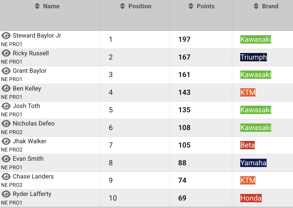 | Steward Baylor Jr. (Kawasaki) | AMA National Enduro Series | Pro1 |