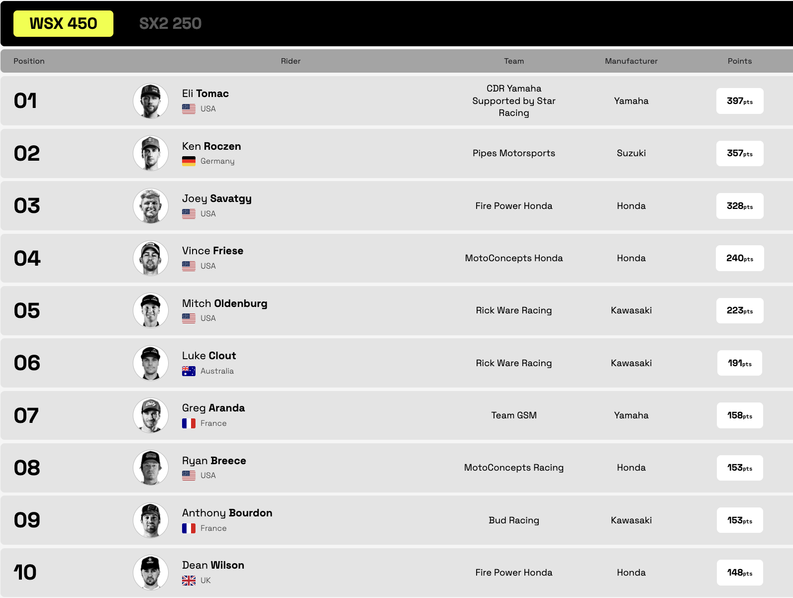 The WSX team said live timing will be available on race day on the WSX homepage here: worldsupercrosschampionship.com.