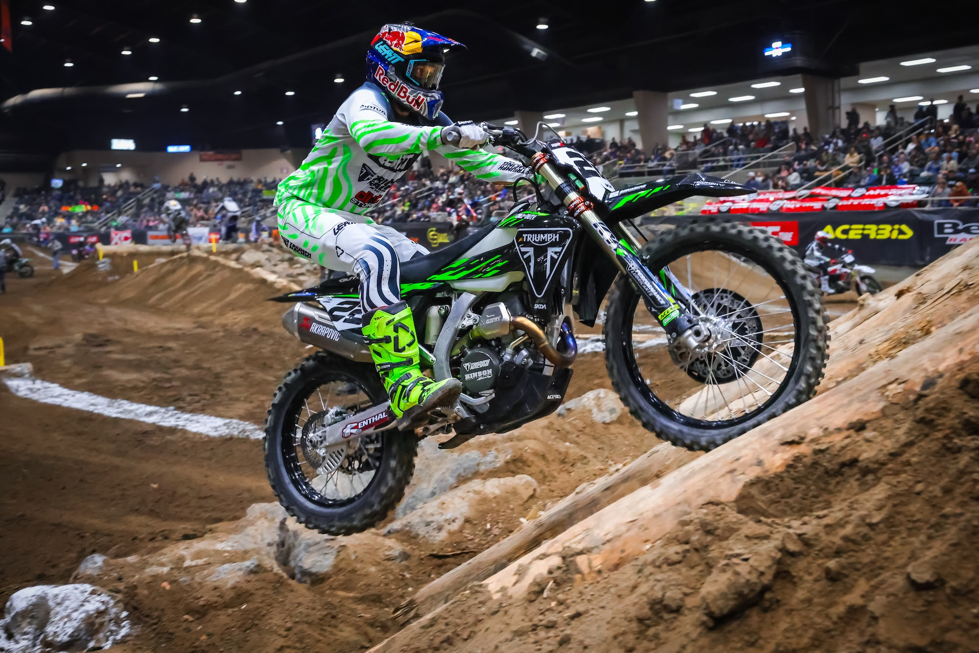 Walker finally got the start he needed in Moto 3, grabbing the holeshot and looking to make it count. After qualifying fastest yet struggling in the first two motos, the Triumph rider demonstrated what happens when he combines his raw speed with proper race execution. But disaster struck immediately as Walker made a critical error in the rock pit, the mistake sending him back to mid-pack and handing Hart the advantage he needed.