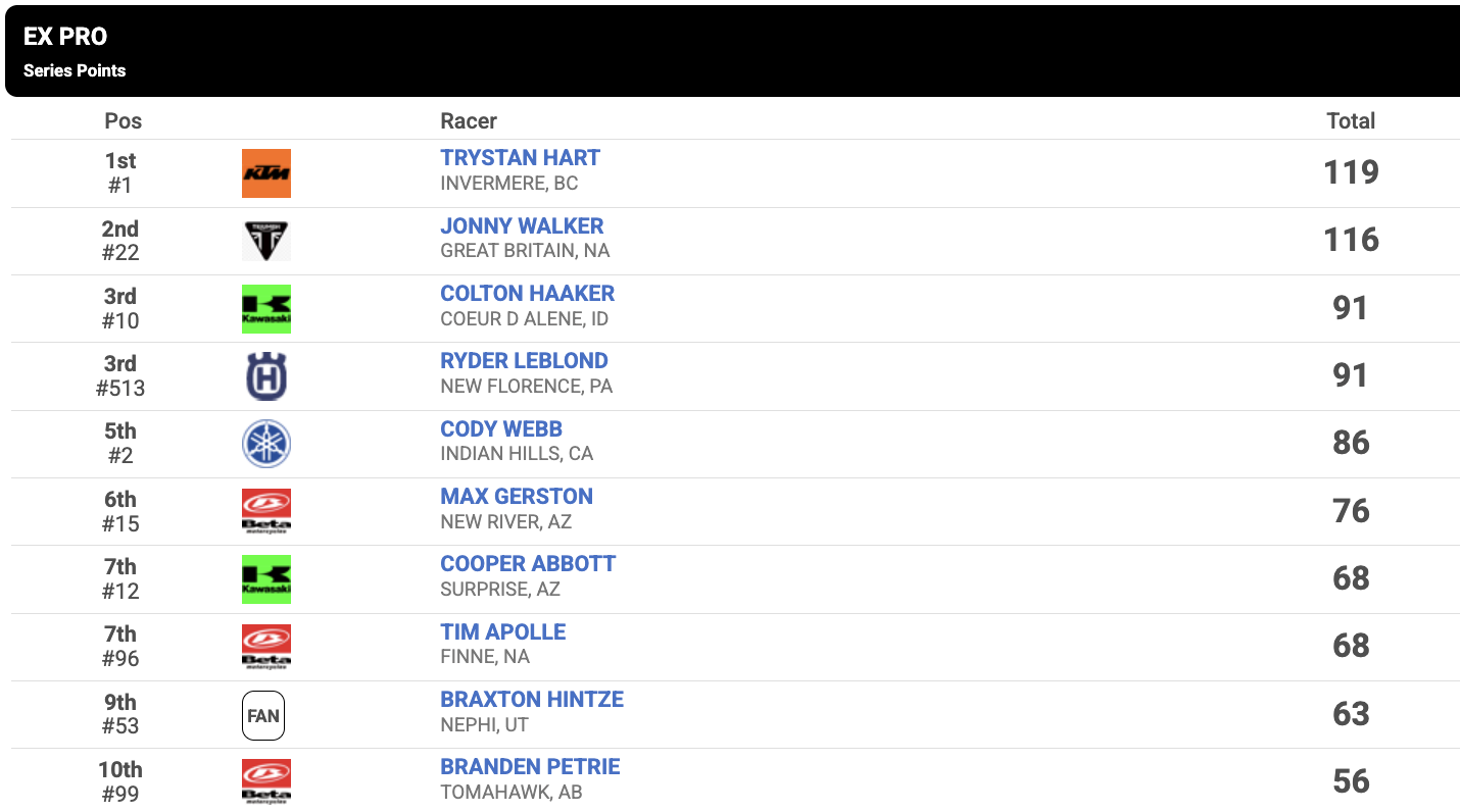 | Liam Draper (Yamaha) | U.S. Sprint Enduro | Pro |