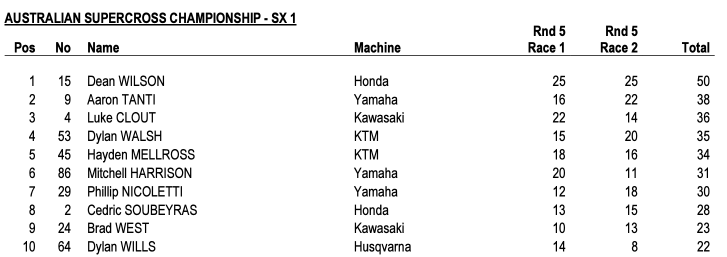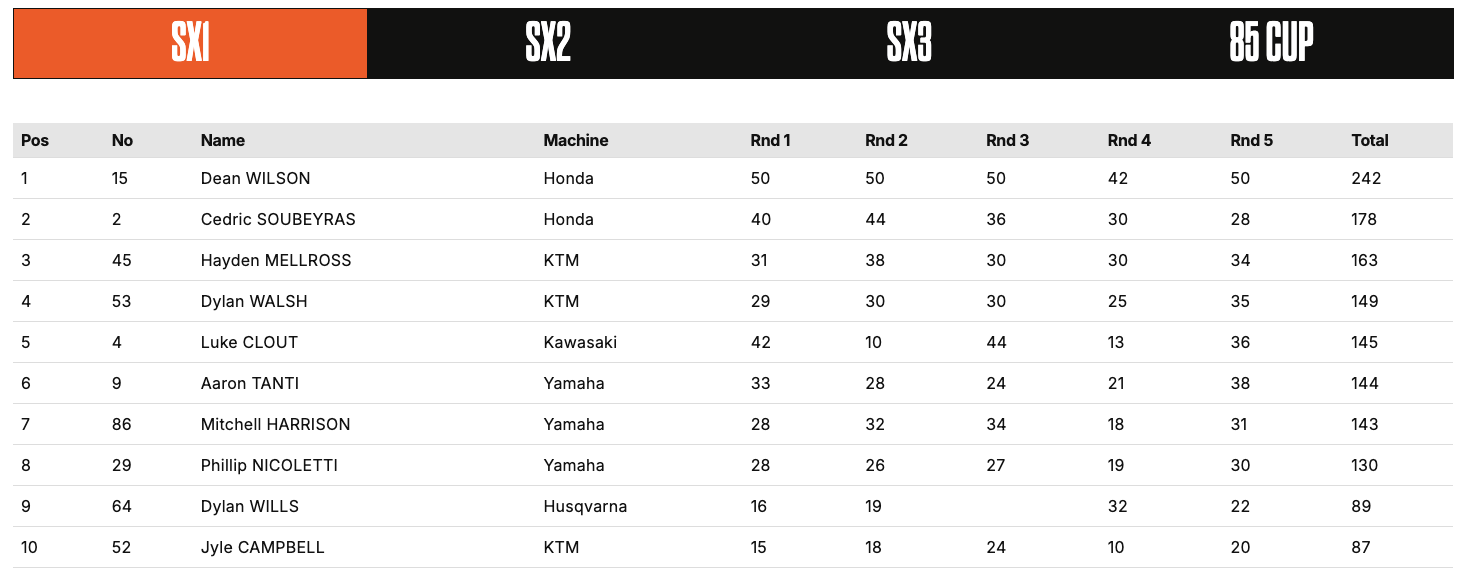 | Dean Wilson (Honda) | Australian Supercross Championship | SX1 |
