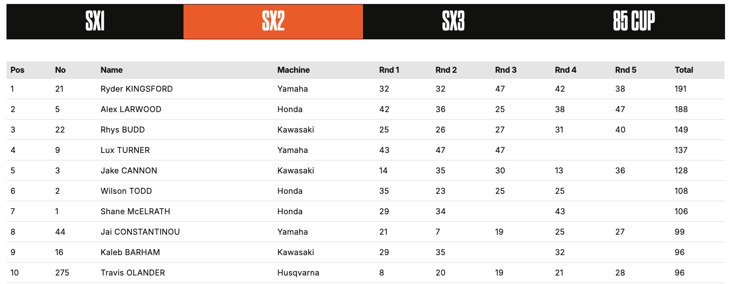 Ryder Kingsford (Yamaha) is the SX2 Champion.