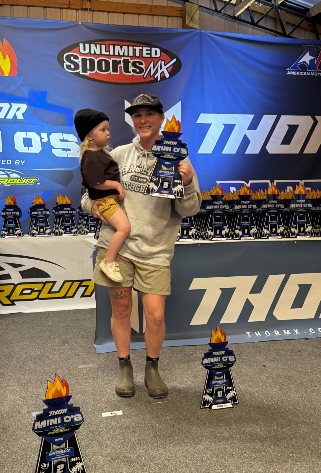 I spent a week at the THOR Mini O’s racing the supercross portion, with a goal of finishing inside the top ten in the women’s class. I’m proud to say I achieved it, wrapping up the week with a ninth overall. As a veteran WMX rider, sharing the gate with some of the fastest young women in the world, including Lotte Van Drunen and many rising talents, reminded me exactly why I love this sport. I also had the chance to line up with Jason Lawrence in the 30+ class, which made the experience even more special. Being one of the only moms on the gate makes me incredibly proud, and I hope my journey inspires the next generation of racers, including my son Taysom, to chase their goals with everything they’ve got.