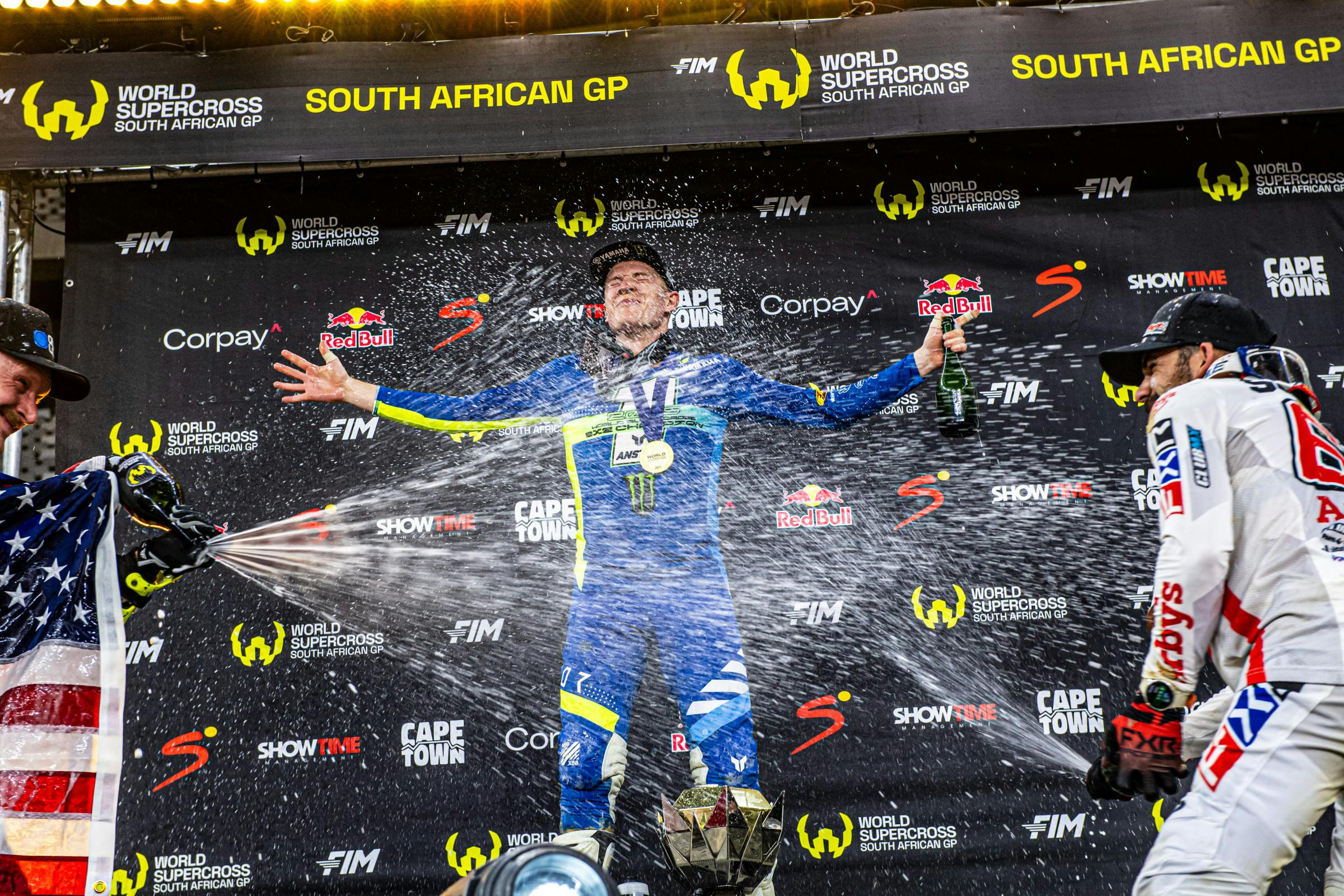 “It’s been awesome,” enthusiastically explained Anstie. “Honestly, and I know it is cliché, but doing this World Supercross Championship and having this time to really fine tune things put myself in a good position physically and mentally. And just with the testing of the bike. Knowing that my things are solid and we are right there. Yeah, it’s been great to run through it all. I’ve also been able to take my wife and little guy to Australia and Cape Town and to these awesome places. We’ve been doing this fun stuff. Like my little guy, he came out in opening ceremonies with me this last weekend. Man, that was pretty cool. It was great to get to experience these different countries and go racing over there. I was able to do it with the family. It was more chilled and relaxed than the U.S. stuff. There was a bit more time. Yeah, it has been really good. I’m in a really good spot and just pleased at this point in my career that it is even a possibility with this World Supercross Championship. It’s great to have the opportunity to do this. It wasn’t around a few years ago, so it’s cool at this point in my career to be able to do that and to have an off-season like we have and to keep it rolling into next year’s AMA Supercross season. Yeah, it’s been awesome.”