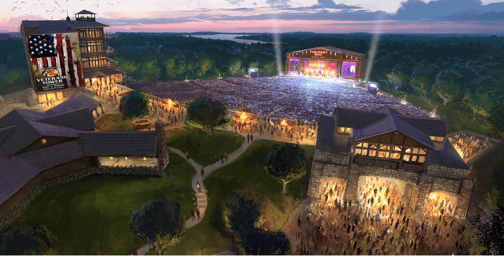 In just a couple of years since its opening, Thunder Ridge has quickly taken its place among the most impressive venues in all of North America, with a capacity of 20,000-plus and offering breathtaking views of Table Rock Lake and the infinite forested Boston Mountain vistas.