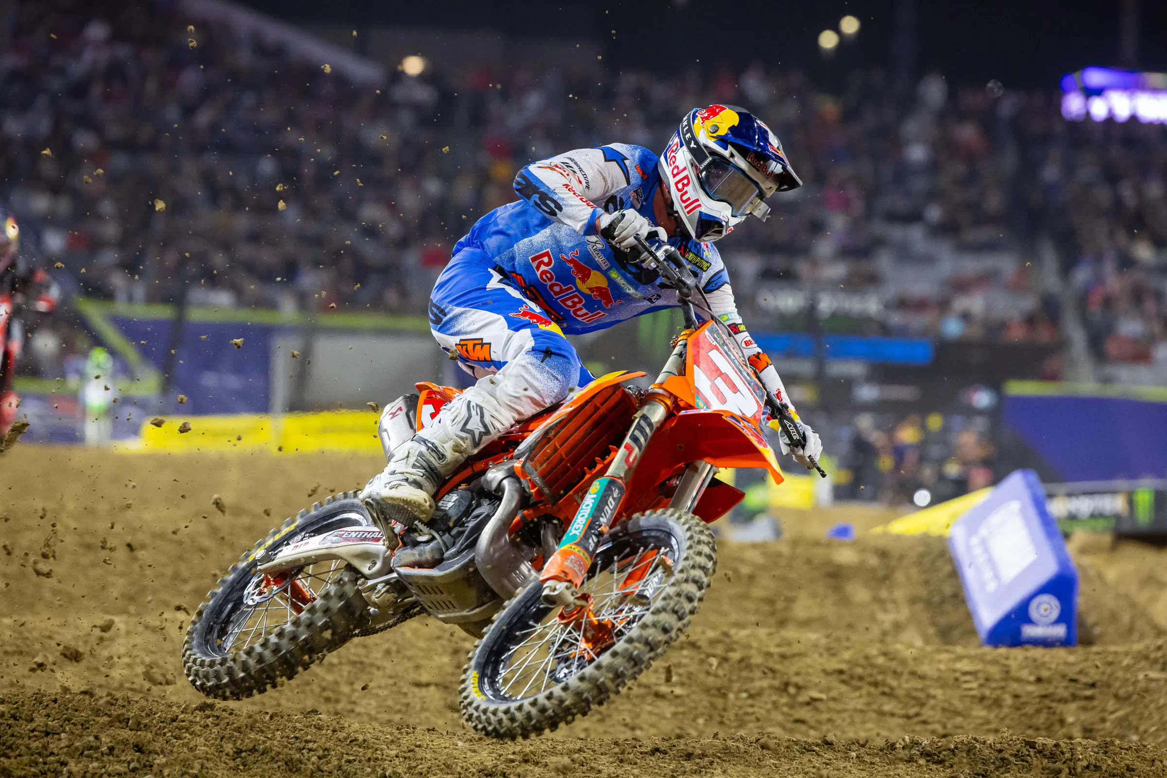 After winning Anaheim 1 for Red Bull KTM, Eli Tomac doubled down to make it two in a row in San Diego. Eli started the day off strong with the fastest qualifying time. He then went out to finish second in his heat behind Ken Roczen. In the main, Eli was third out of the first turn, but honestly, he described his race in the post-race press conference better than we ever could: