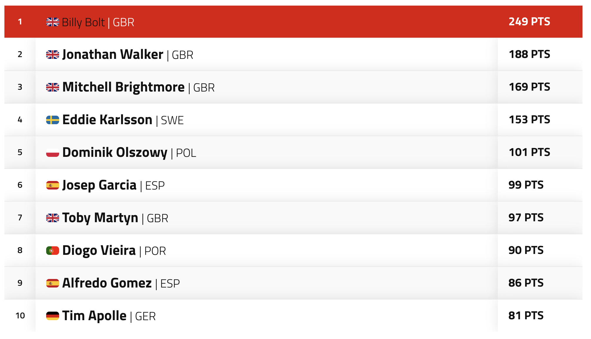 | 4 | Max Anstie | Newbury, England, United Kingdom | 88 |