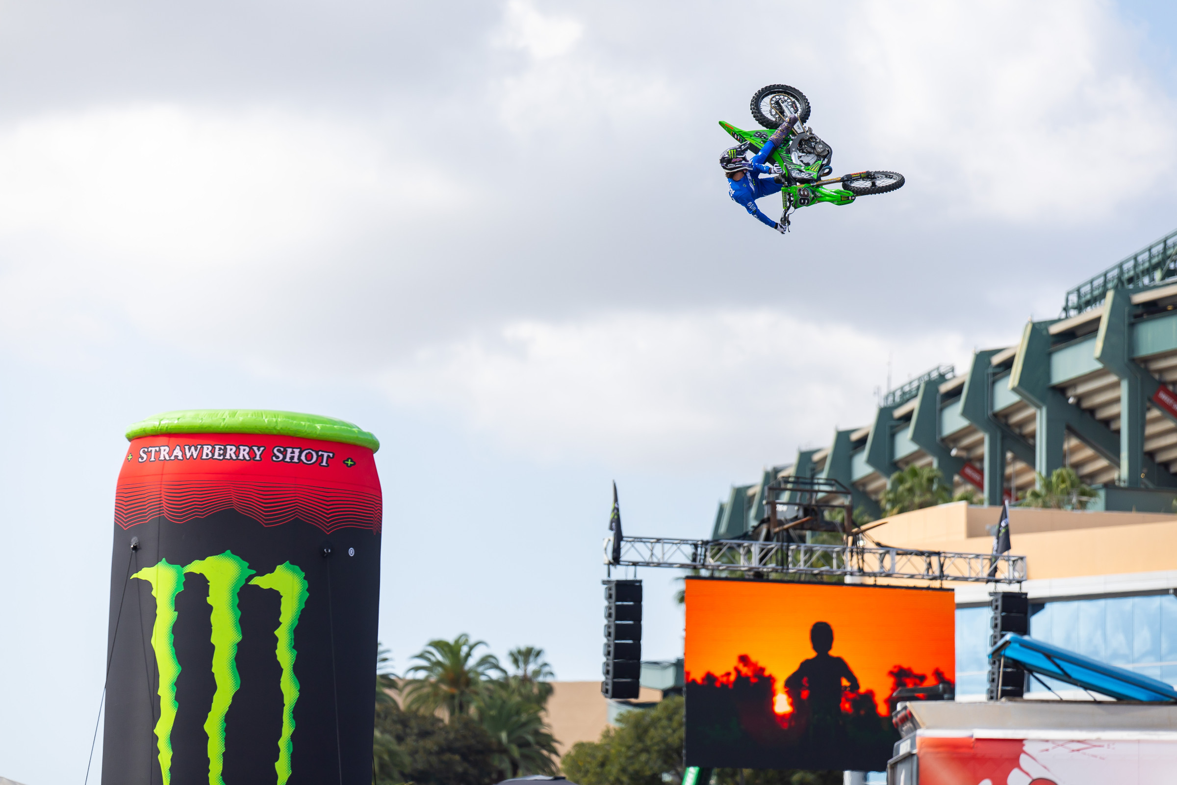 High flying Axell Hodges has been busy being out and about this winter. On the road and up in the air with his Slay’s World Tour program as well holding it all down at his SLAYGROUND riding facility in Southern California, Hodges has been keeping busy airing out his Monster Energy-powered Kawasaki KX450 and creating media content for millions of moto fans the world over. A rider and motocross athlete with his own way of doing things, Hodges has amassed massive social media numbers, millions of wide-eyed moto enthusiasts who eat up absolutely everything the California daredevil posts up. Having recently performed FMX demonstrations at the Southern California Monster Energy AMA Supercross rounds, Hodges is now back stationed at the Slayground compound and dreaming and scheming up his next big adventure. Over the weekend, Hodges took a break to get us up to speed on his antics and frequent flyer travels.