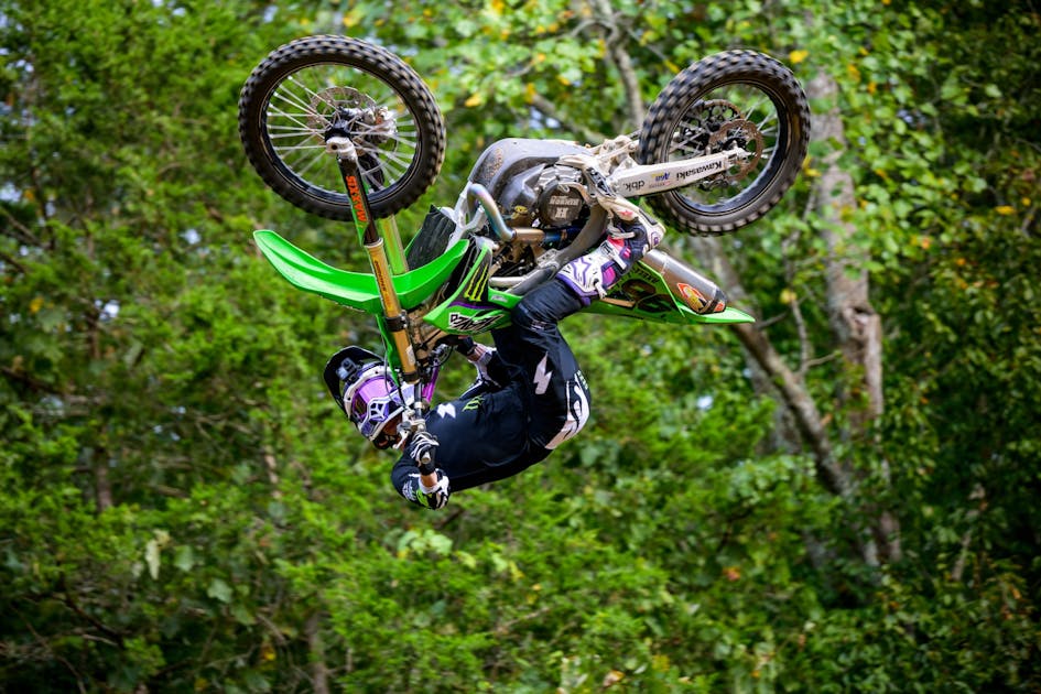 “Yeah, it never really stops either,” explained Hodges of his around the clock high adventures. “I’m trying to ride and then I’ve been working on my YouTube channel a lot lately. Just for my personal channel and then it is just constant editing work. I come home and edit and then try to stay on top of everything. I’m maintaining the property and keeping everything running there and working on jumps. Then we’re traveling and doing shows. There is always something going on. I’ve done a little bit of stunt work lately, too. I just did a Harry Styles music video that’s coming up. I got to do a stunt double scene for that. I’m always constantly trying to do things that are different and are fun and I can make money while doing it. I just love all aspects of dirt bike riding dirt bikes and filming."