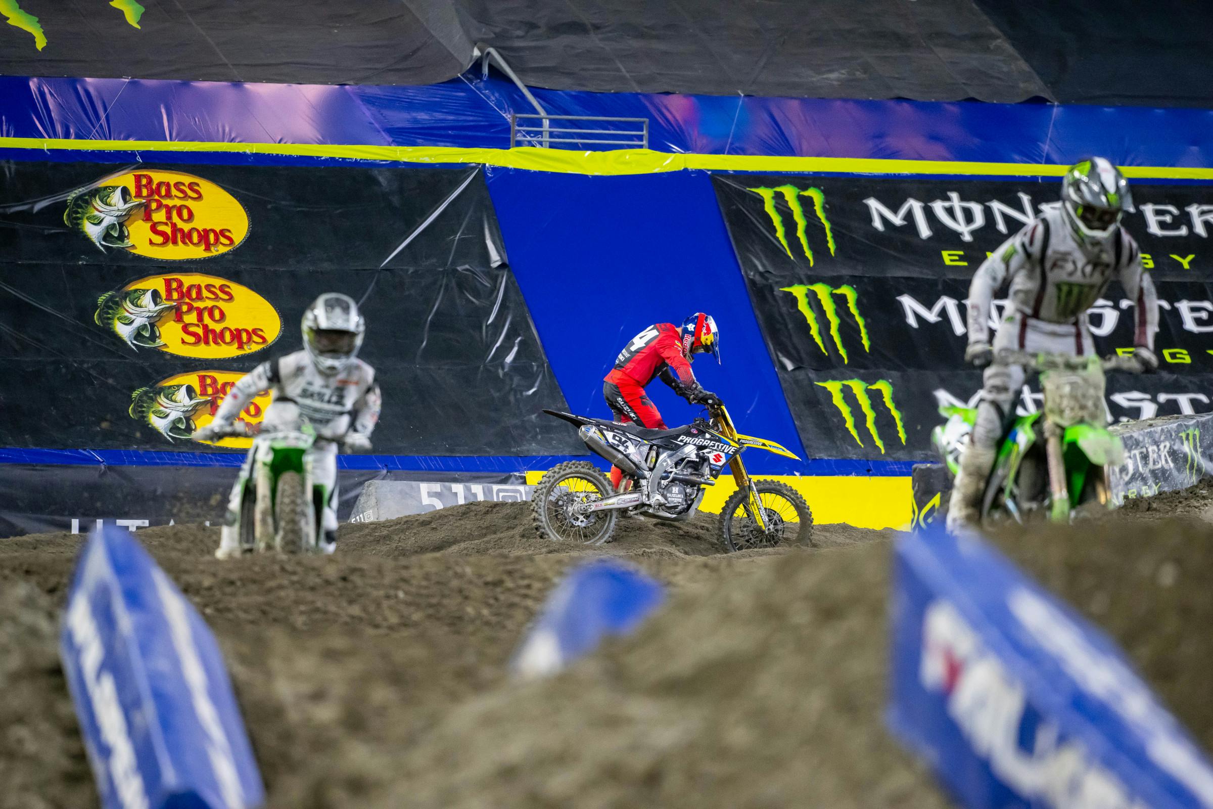 “It was a bittersweet main event. I feel like my riding was really good, but I spun off the gate. I’m not sure 100% why that happened, but after that I was making my way through the pack. At the 10-minute mark, I figured the track out and really got going; I was able to do a lot of the rhythms deep into the main. Then I made my attempted pass on Kenny [Roczen] for third, and we got together. I certainly didn’t intend on taking him out—it was just a crappy racing incident, but not how I wanted the night to go, especially after how I felt. In my perfect world, I would’ve jumped to the inside, got that lane, and then tried to catch Cooper Webb. Obviously, it’s cool to still have the red plate—we definitely salvaged some points. With a good start, I feel like it could’ve been a completely different night; I had what it takes to get the win.”