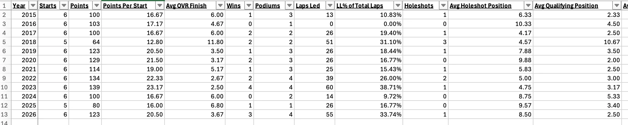 Also, with Roczen's Anaheim 2 and Tomac's Glendale heavily affecting their stats, it's still interesting to see after six races Hunter Lawrence's 2.75 first lap positions being much better than Roczen's 5.13 and Webb's 5.38. Almost two spots better for the #96. With it being more "Startcross" than ever before, Lawrence is consistently putting himself in a great spot.