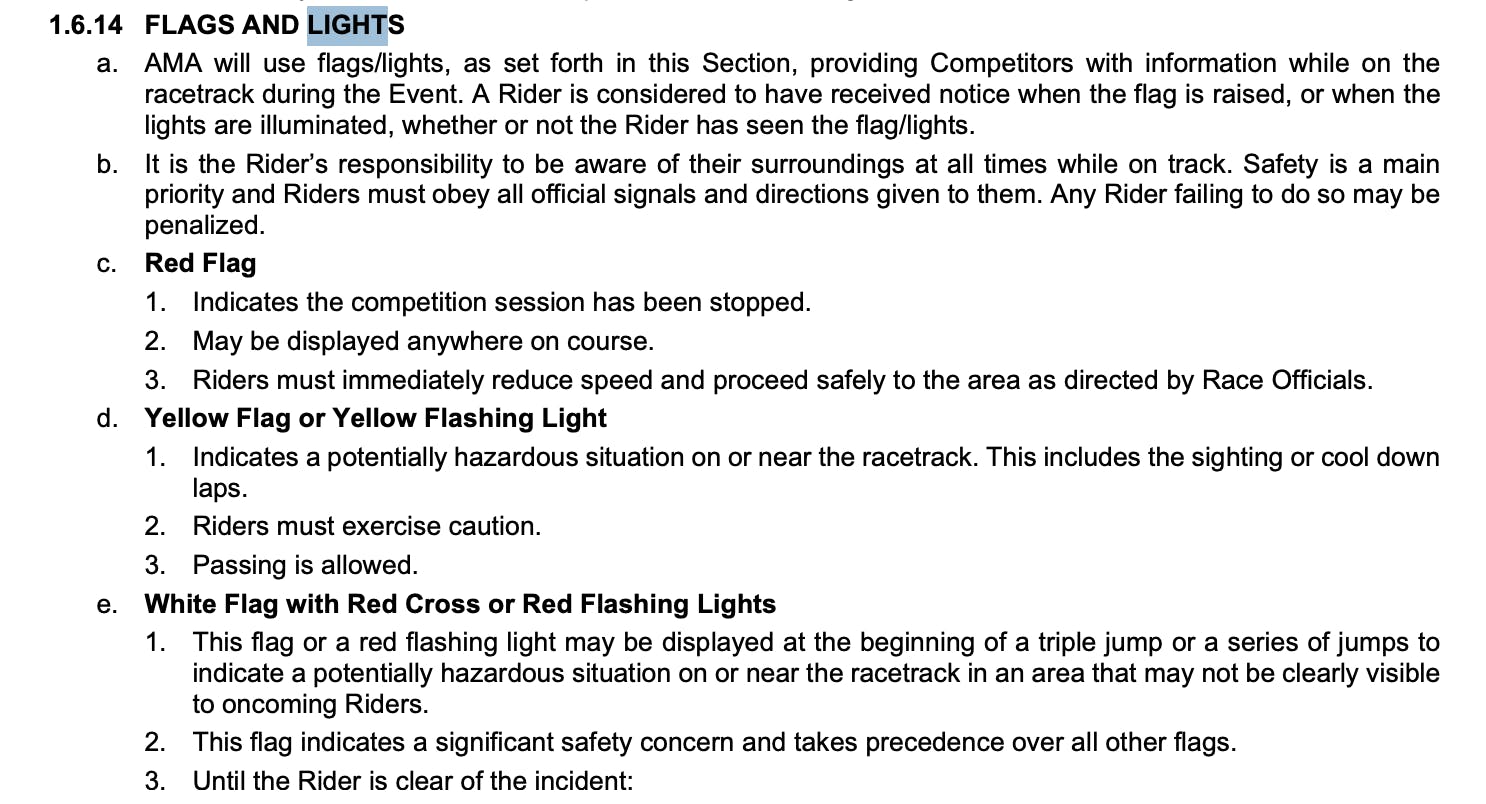 The 450 situation is also currently under review. Here's a look at the rulebook in regards to flags and lights: