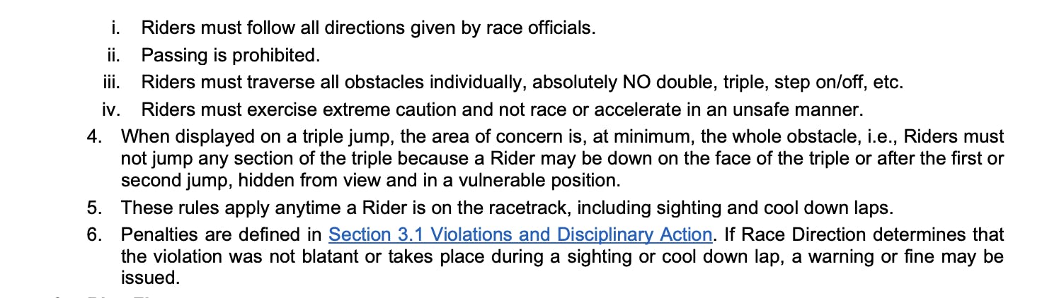 - 450 Main Event: Red light/red cross flag incident involving the leaders at the finish line jump was reviewed. No violation was determined.