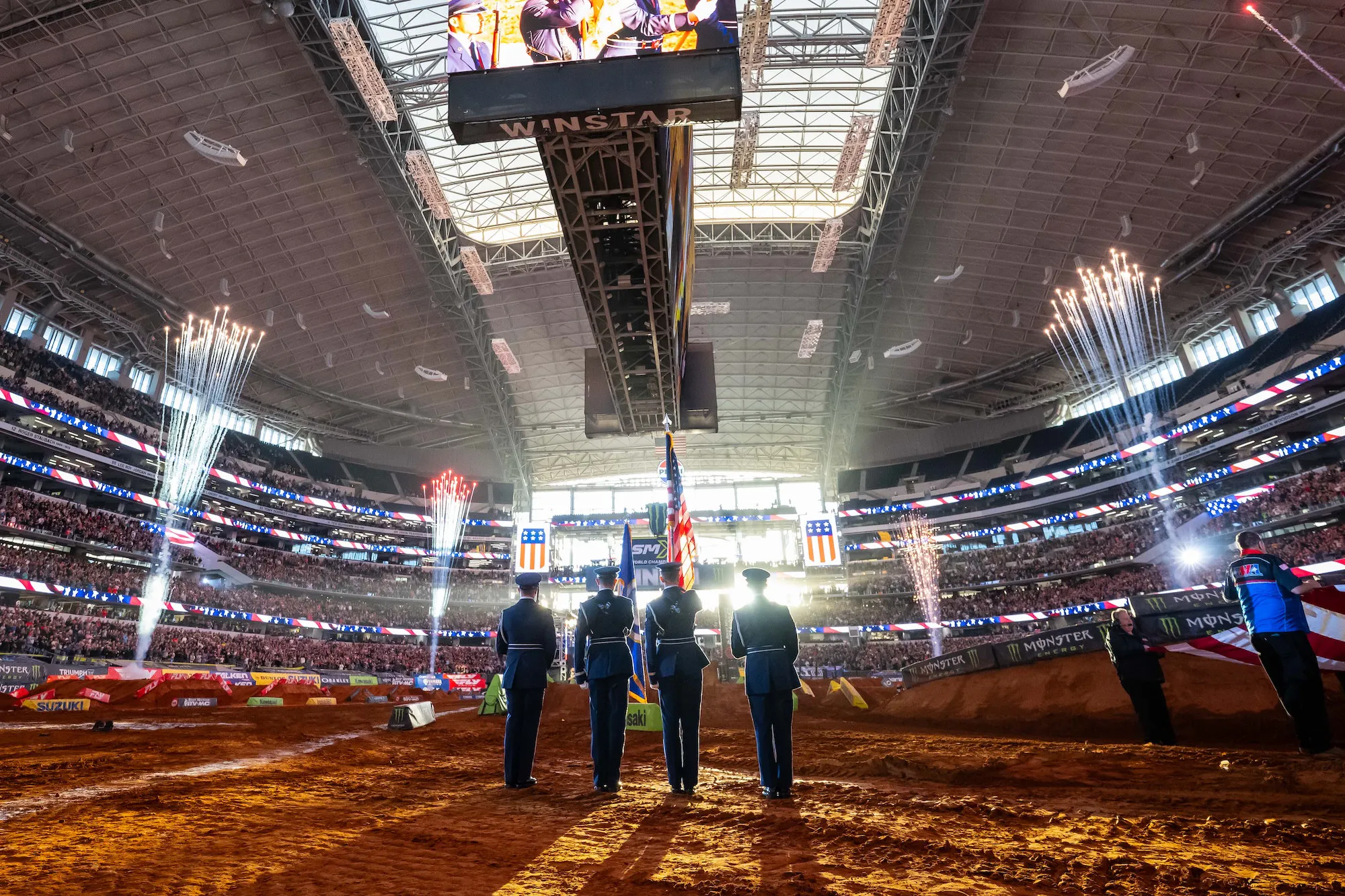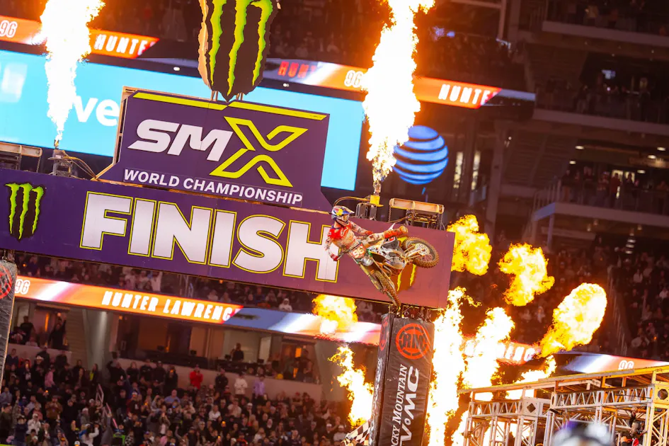 ARLINGTON, Texas – The seventh round of the 2026 Monster Energy SMX World Championship signified the annual visit of the Monster Energy AMA Supercross Championship to the Dallas-Fort Worth Metroplex for Military Appreciation Night inside AT&T Stadium. A captivating night of racing produced a pair of first-time winners, as 450SMX Class points leader Hunter Lawrence finally seized control of the spotlight with an impressive breakthrough victory for Honda HRC Progressive. The Australian outlasted each of his championship rivals to assert his hold of the red plate.