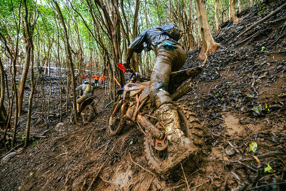 Round 2 of the AMA National Hard Enduro Championship, presented by IRC Tire, was the Ultimate Hawaiian Hard Enduro on the Hawaiian island of Kauai. With the season kicking off in the arid Southern California desert at the King of the Motos last month, the second round brought the complete opposite conditions in Hawaii, with rain all week setting the stage for a brutal showdown in the steep jungle terrain. This is the third Ultimate Hawaiian Hard Enduro that the Garden Island Motorcycle Club has put on, but this legendary club has been hosting these off-road races since 1945 here on Kauai.