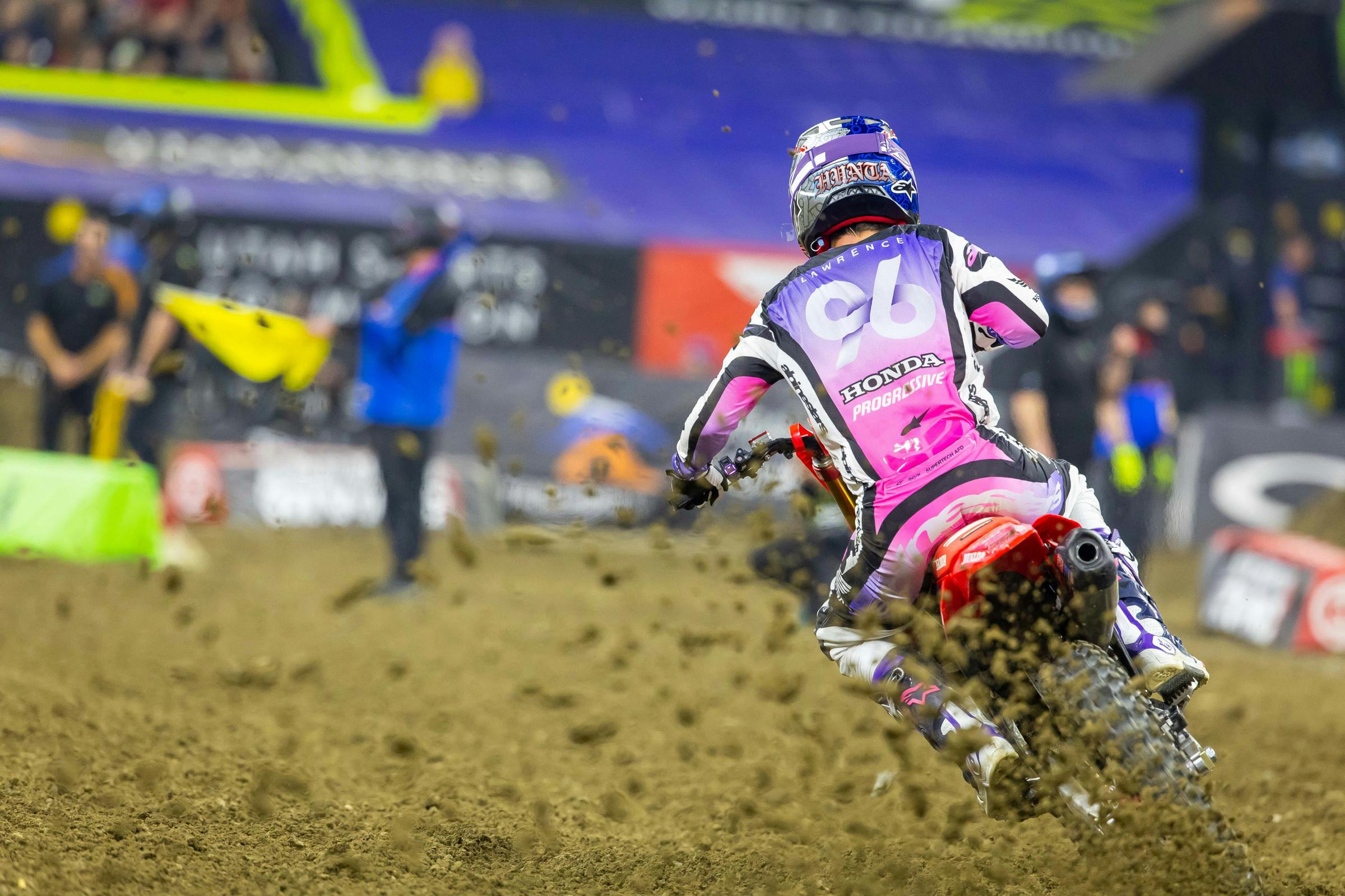 Honda HRC Progressive’s Hunter Lawrence and Eli Tomac have been trading wins for the last four races. Lawrence took over the points lead in Glendale, only to get fourth the following week while Tomac won and closed in the points gap to only one point. But in Arlington, Lawrence was able to get his first ever 450SX win, came second to Tomac in Daytona and then won again in Indy. Every time Tomac closes, Hunter has an answer.