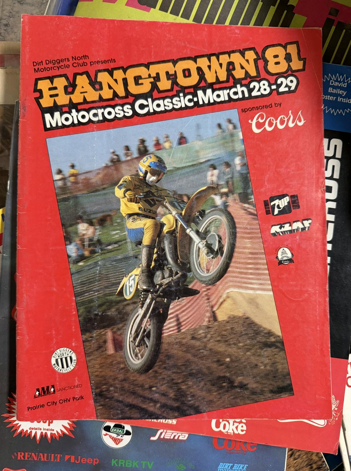 Or so we thought. As we went through the old MXAs, Moto Cross, Popular Cyclings, and more, we found ALL of the 1971 Dirt Bike magazines—extremely rare and hard to find! Mike lived in NorCal, so we started finding old event programs from Hangtown, the Golden States, Sears Point Trans-AMA and Trans-USA races, as well as ticket stubs, bumper stickers, and more. Then we found this magazine from 1981 that I have honestly never seen before nor heard of...