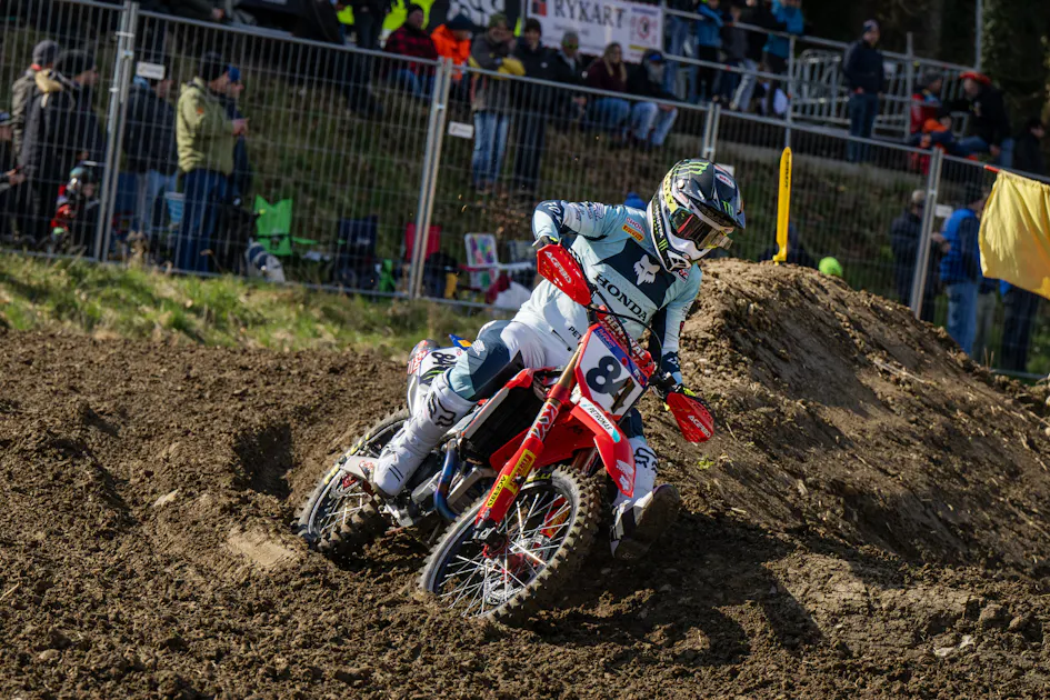 Coenen did his best to attack Herlings through the driving rain, but on a slick circuit the Dutchman was able to hold on to win by two seconds, and reduce the Belgian’s Championship advantage to seven points!