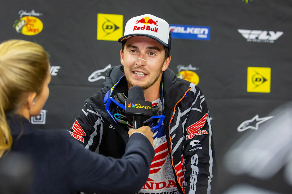 “My day was a bit of a bittersweet one," said Lawrence. "The qualifying race went really well, and I was happy with everything—the bike, the team, myself, everything felt great. I was feeling really good in the main event and was honestly feeling so comfortable. I was really happy with where I was, and I made a push to the front and was catching Kenny and Chase. I just got caught by surprise with the crash at the end of the whoops. I was okay, but the bike took some unfortunate damage. It’s just racing, sometimes that happens, and I had to pull into the mechanics’ area. I crashed two more times just due to the front brake locking on, so that was difficult to bring home but I think we managed two points. It was a difficult situation, but we’re still in it and can’t wait to bounce back next weekend.”