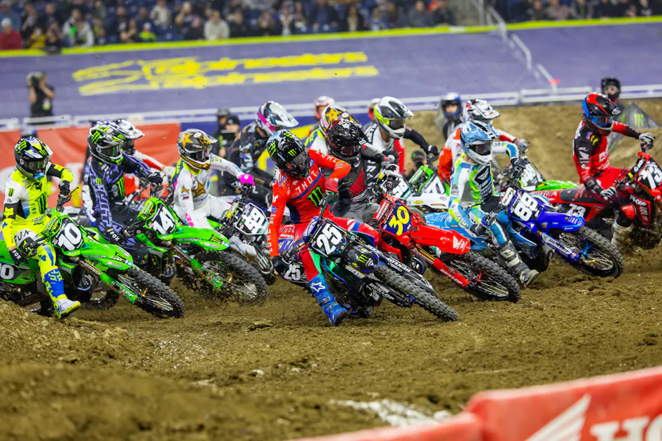Round 11 of the 2026 Monster Energy AMA Supercross took place on Saturday night. Check out the video highlights from the Detroit SX as Cole Davies (Yamaha) was credited with his third 250SX straight win and Ken Roczen took the 450SX win. Plus, Nate Thrasher's big crash in the whoops while leading the 250SX main event and Hunter Lawrence's costly crash in the whoops that handed the points lead back to Eli Tomac.