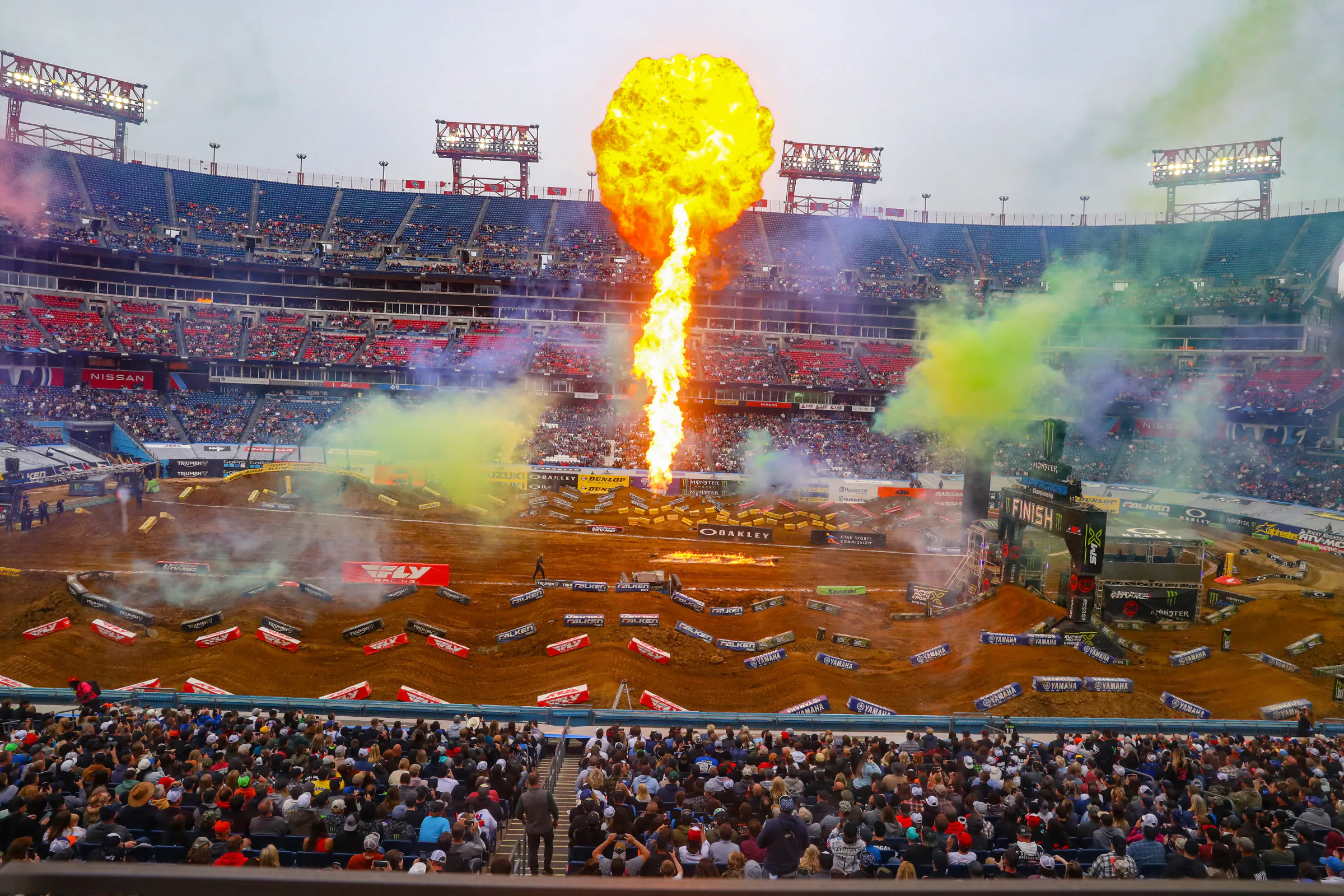 Welcome to Racerhead, and a very busy weekend in Nashville. Tomorrow marks the 13th round of Monster Energy AMA Supercross at Nissan Stadium. We've got two bikes sharing the red plates in Red Bull KTM's Eli Tomac and Honda HRC Progressive's Hunter Lawrence, though the momentum belongs to Progressive Insurance Cycle Gear Suzuki Team’s Ken Roczen. He won his second straight race last weekend in St. Louis (the first time since 2021 that he's done that) and is now just five points off of Tomac/Lawrence with five rounds left. Nashville is a day race—bikes on track at 7:30 a.m. sharp local time, just like nearby the Monster Energy AMA Amateur National Motocross Championship at Loretta Lynn’s Ranch usually does—and will air live on NBC network TV. And tonight, there will be the Jeremy McGrath Holeshot Challenge down on Broadway, next to the river and across the river from Nissan Stadium.