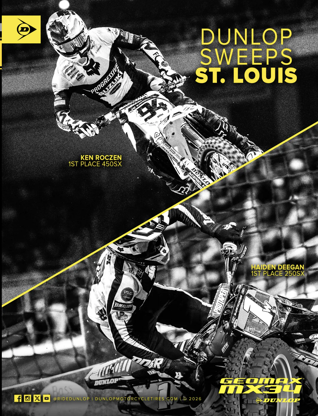Has there ever been a season where a single brand—let alone a single team—dominated like Monster Energy Yamaha Star Racing has in 2026? In the premier class, yes. In 1996, the King of Supercross, Jeremy McGrath, had the single most dominant SX season ever, winning the first 13 rounds in a row on his Honda CR250, then losing to Kawasaki's Jeff Emig in St. Louis. Jeremy then won the final round in Denver for a 14-for-15 season, which was one better than Ricky Carmichael's 14-for-16 season of 2001, when he clinched his first AMA Supercross Championship. However, in the 125/250 SX class, the Star boys are definitely within striking range of claiming the "best-ever" season. Between Haiden Deegan, Cole Davies, Max Anstie, and Pierce Brown, Star Yamaha has won 11 of the first 12 rounds so far (the only non-Yamaha win was Seth Hammaker’s Daytona SX win on Kawasaki). The next closest was Kawasaki in 2004, when James Stewart was riding a KX125 for the Kawasaki factory team in the East and Ivan Tedesco rode for the Pro Circuit Kawasaki team in the West aboard a KXF250. Each won seven times on their way to their respective titles. Stewart almost certainly would have had a perfect season if not for a concussion during practice at the Indianapolis round, which opened the door for Yamaha of Troy's Josh Hansen to get his first-ever win. Tedesco's only blemish came in San Francisco when Nathan Ramsey got a historic first-ever win for Honda's CRF250.