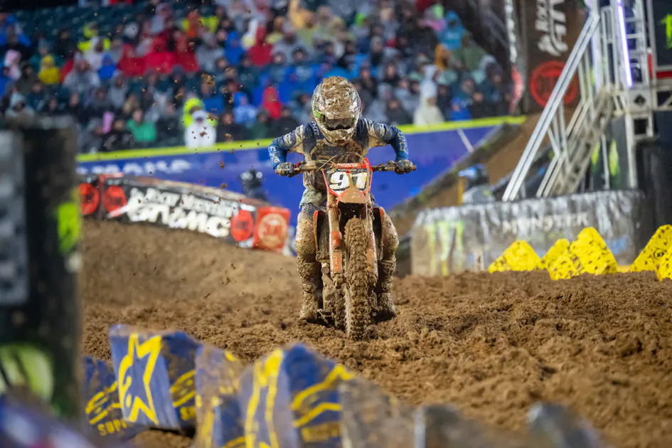 Clark finished third in his heat race earlier in the night and was coming off a career-best—his first professional top-ten finish—at the Cleveland SX Triple Crown last week. Hopefully Clark has a full recovery.