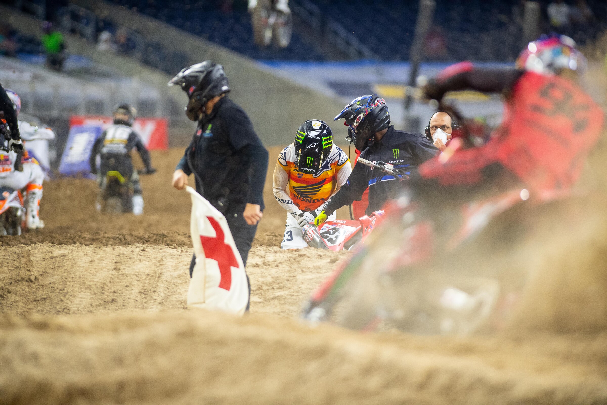 Albert, we feel your frustration, but the officials will tell you that their first priority is safety. And earlier in the evening, both an official and a photographer were hit by out-of-control motorcycles that flew off the track. That might have made them extra sensitive to any infractions that involved downed riders, including Chase Sexton, who caused the wheels-on-the-ground flag in the first place. And don’t deny yourself a chance to see a good series over a call you disagree with. That’s cutting off your nose to spite your face. Roczen himself posted his frustration with the call, then moved on to the next round. DC