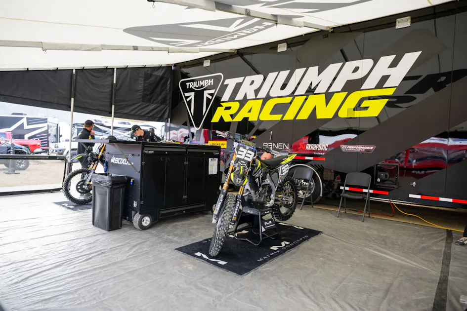 When the first round of the 2024 AMA Pro Motocross Championship ended at Fox Raceway on Memorial Day weekend, the 250 Class results included something that had never been seen in race results in the 52-year history of the series: A Triumph motorcycle. And it wasn’t in there just once, but twice—and both were in the top ten overall. In the outdoor national debut of the Triumph TF 250-X, factory rider Jalek Swoll went 6-5 for fifth overall while teammate Joey Savatgy went 5-13 for ninth overall, overcoming a first-turn crash in the second moto to salvage his day. Crazy to think that had Joey not gone down Triumph might have had a podium.