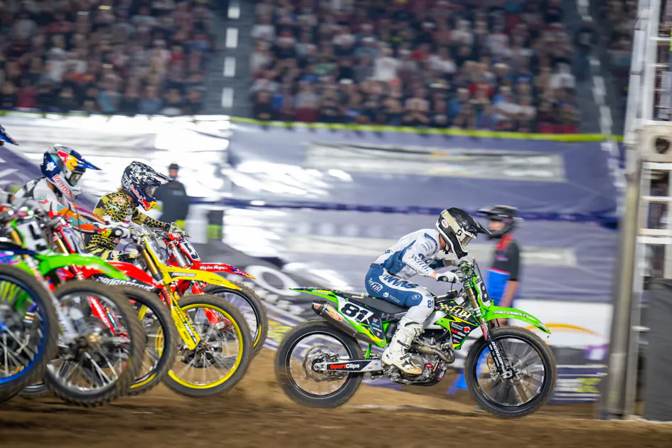 HBI Racing-backed privateer Ty Masterpool gets a big jump on the big boys of the factory teams at the SuperMotocross World Championship Finals at the Los Angeles Memorial Coliseum. The Kawasaki rider was a thorn in the side of the salaried men of the 450 Class all summer long, and he continued that right into the SMX Final. When all was said and done Masterpool ended up tenth overall in the final SMX rankings, which came with an eye-popping $50,000 bonus from the SuperMotocross points fund.