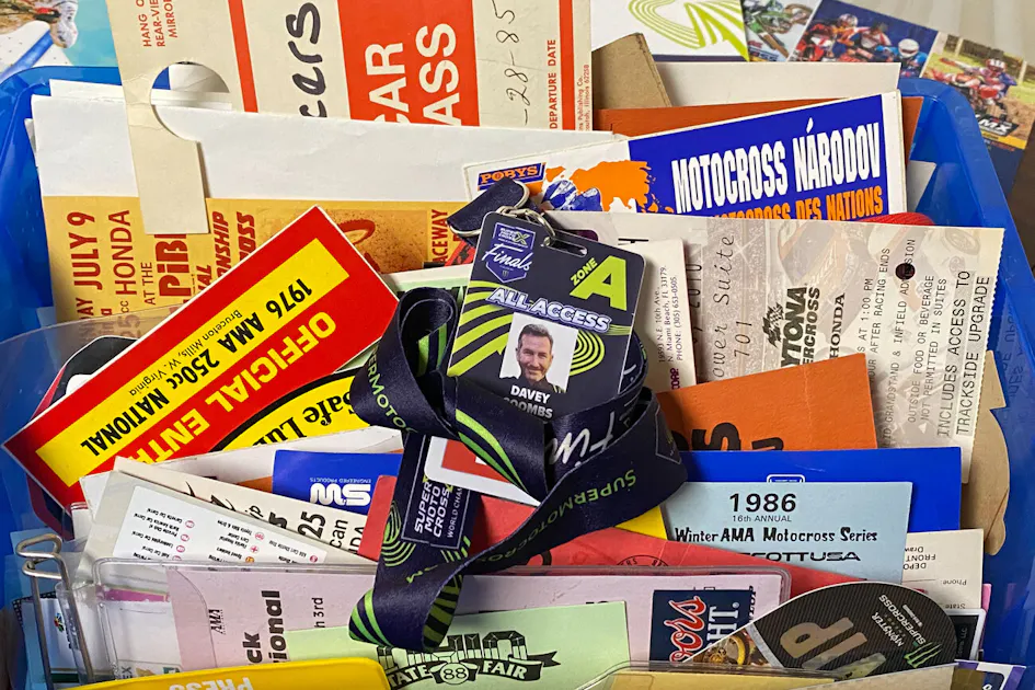 On a shelf in my office at Racer X is a plastic crate full of event tickets, pit passes, AMA licenses, hard cards, media credentials, and more. They are my collection of a lifetime of going to the races, first as a kid with my family, then as a competitor myself, next as a photographer and race journalist, then a sideline reporter for television, and most recently as a promoter. To some degree they also illustrate the history of where we’ve been as a sport.