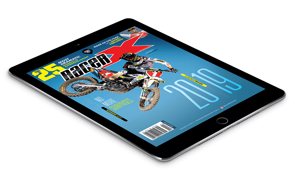 Read features about our 2019 Rider of the Year, our 2019 supercross predictions, and Joey Savatgy's future with Monster Energy Kawasaki. We also come clean about how Jason Anderson's championship caught us off guard, and we count down the 25 most exciting moments in supercross history. All that and much more, exclusively in the February 2019 issue of Racer X Illustrated.
