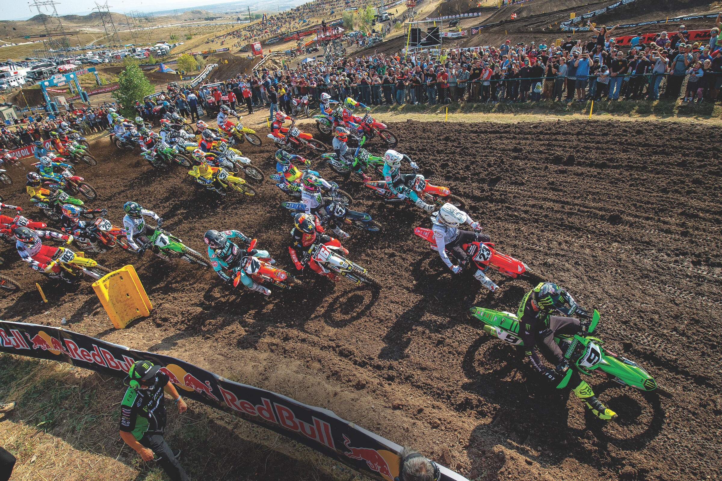 Read Gate Pics NowAtop the steepest first turn on the Lucas Oil Pro Motocross circuit, 450 Class rookies Adam Cianciarulo (9) and Chase Sexton (23) lead the way into Thunder Valley.