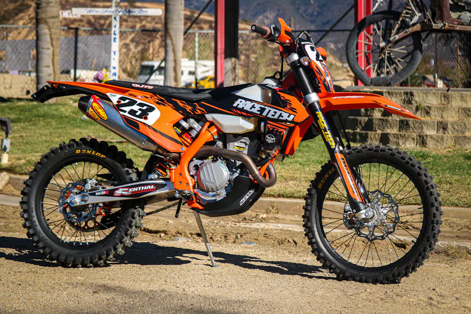 Race Tech’s Paul Thede wanted to get his son Brandon back out on a bike, so he thought he’d look into a bike they could ride on the trail, street, and even the occasional vet moto track. Brandon hadn’t ridden motocross in years, so he needed a bike he could cruise around on with his dad but also connect some pavement with some dirt roads. Paul purchased a used 2019 KTM 350 EXC-F because the 350 simply weighs less than a 450 and is less intimidating. However, once Paul and Brandon received the bike, they quickly found out how slow the stock 350 off-road bikes are, so they wanted to get some power back while maintaining the friendly 350 character.