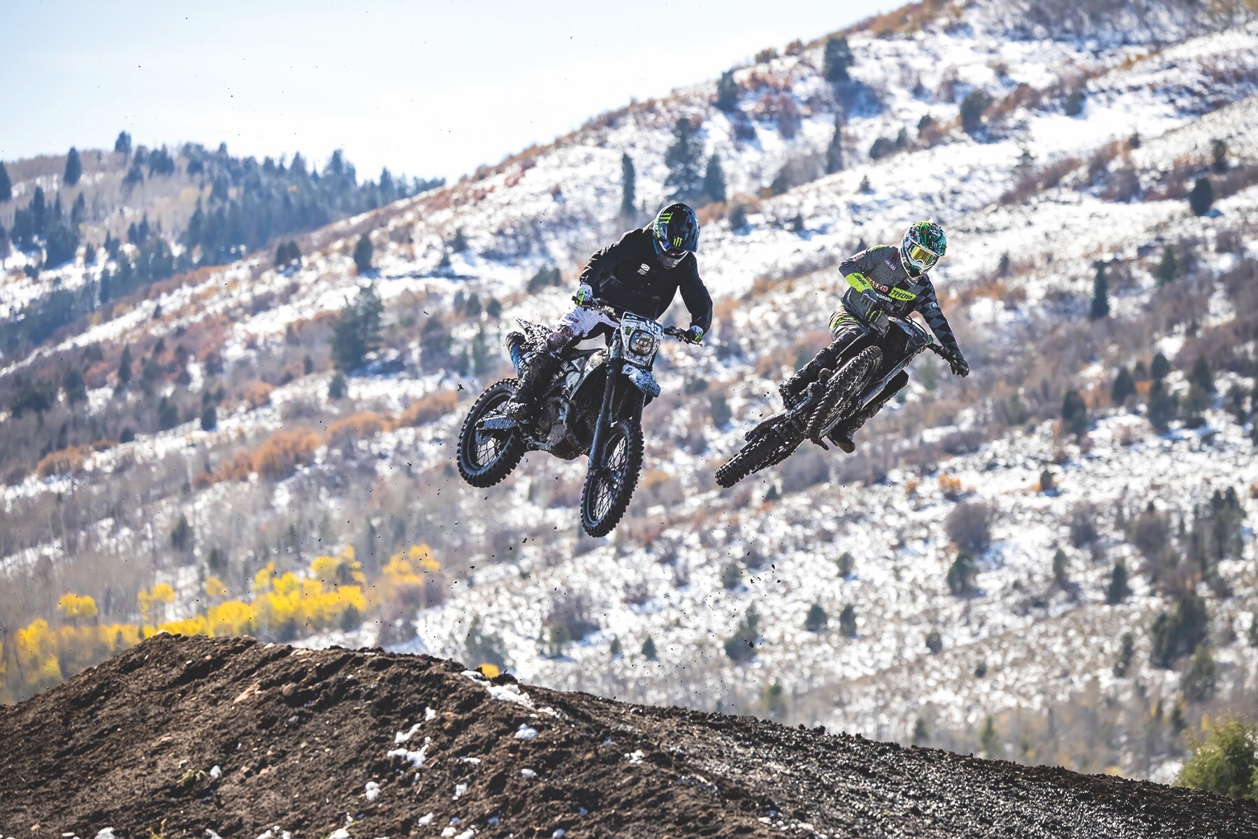 Rally car racing star Ken Block has turned this dream into a reality at his ranch home just outside of Park City, Utah, and one of his riding buddies just happens to be one of the greatest icons of the sport, Jeremy McGrath. On a snowy fall day, Block and McGrath got together to put in some laps at the Block Ranch on Ken’s brand-new private motocross course.