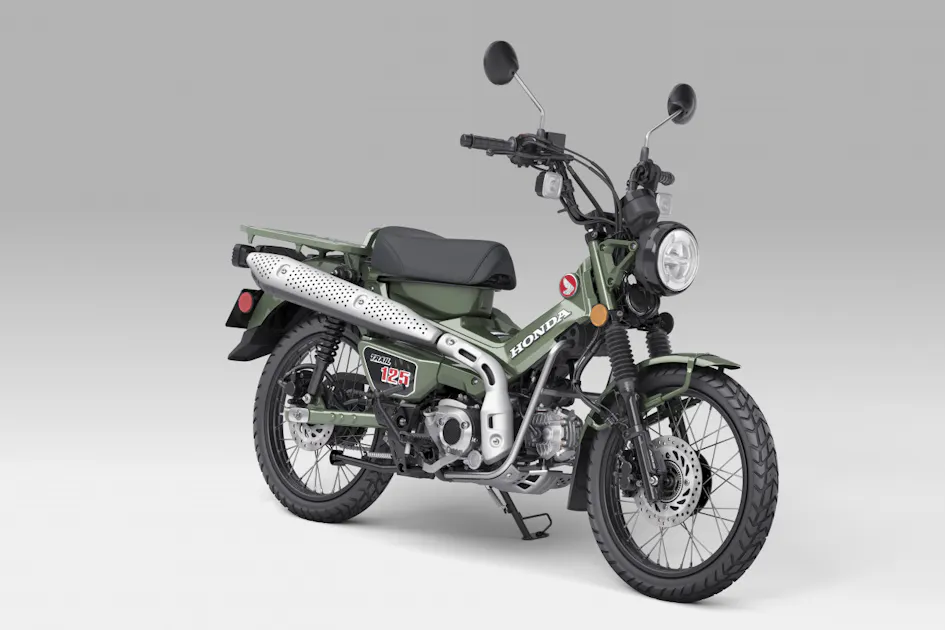 Inspired by the original Honda CT models of the 1960s, the Trail125 has what Honda says is “an authentic, vintage look, evoking the ‘You Meet the Nicest People On a Honda’ mantra for which the brand has always been known for.” The 2023 Trail125 got an updated bore and stroke last year, contributing to a bigger air-cooled 125cc four-stroke SOHC single with a four-speed no-clutch semi-automatic transmission.