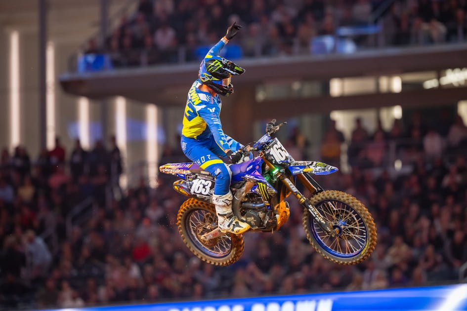 More than a year ago, last February in Tampa, Pierce Brown was headed to what would have been his first career win in Monster Energy AMA Supercross. With victory in sight, the Monster Energy Yamaha Star Racing rider threw it away in the whoops, crashing himself out of practically the entire season with a back injury. When the 250SX East opened this time at AT&T Stadium in Arlington, Texas, Brown once again found himself in the lead in the late going, only this time he held on, earning that long-overdue win, 378 days later.