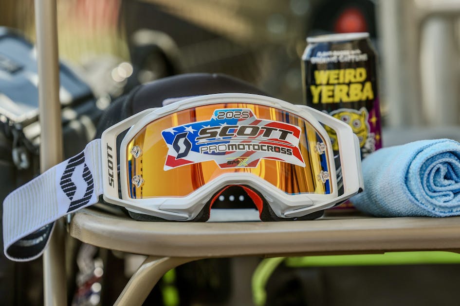 Riders wearing their goggles around their necks on the podium is a time-honored tradition that goes back to the racing days of Roger De Coster. Showing off the brand name on the strap gave early goggle companies like Carrera and Baruffaldi instant advertisement, as in, wear our goggles and you can win too. Every sponsored rider knew that before stepping on the podium for a trophy and an interview, they first needed to pull their goggles down around their neck.