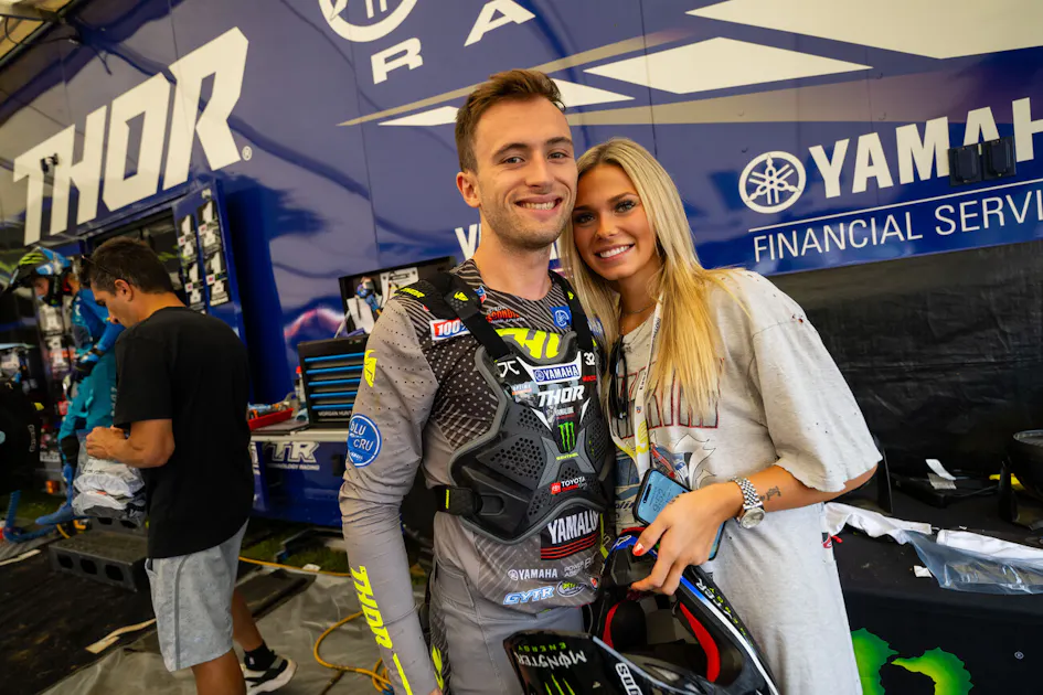 Jim Holley was a perfect fit for Yamaha’s 50th celebration. WALLENBERG ![Austin Forkner and his girl Rylee make for a strong paddock entrance.]()